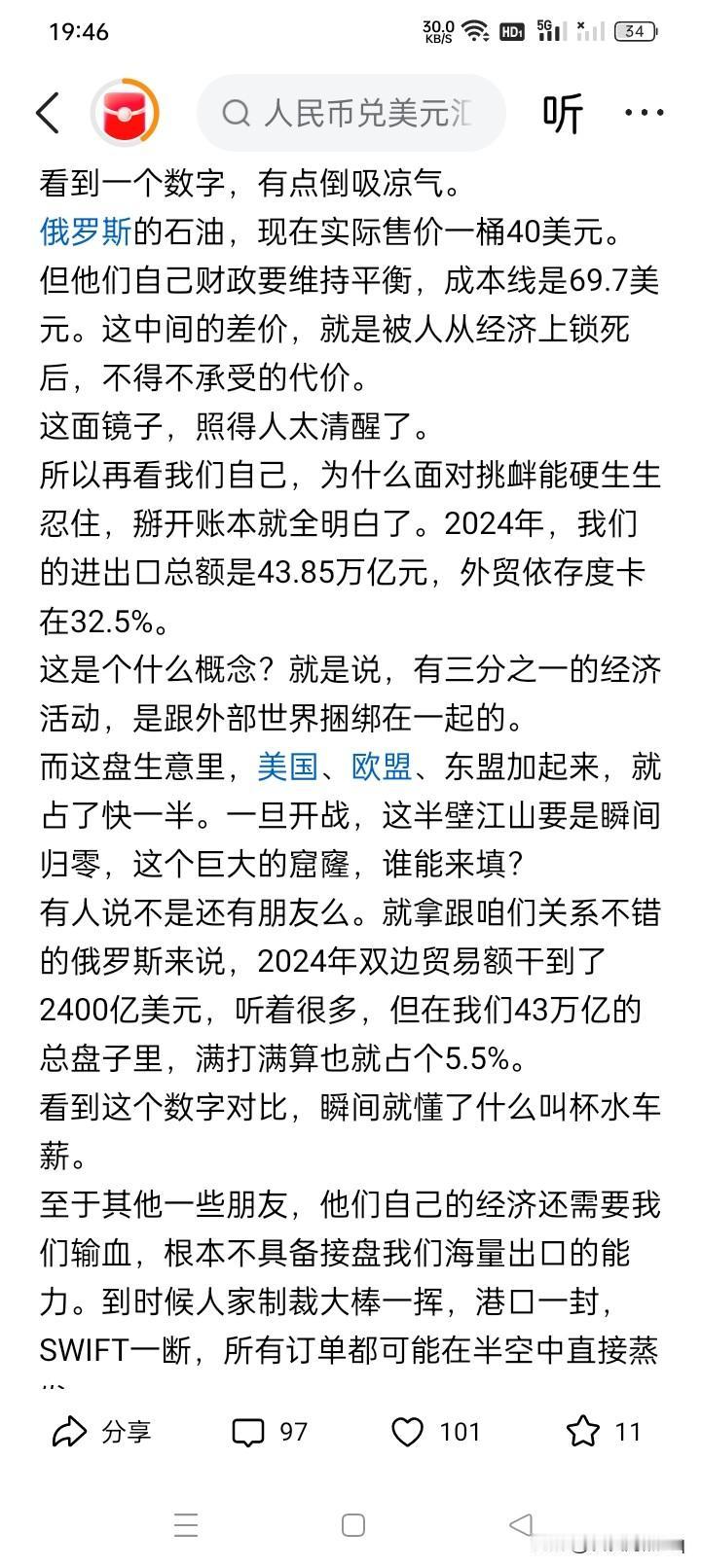 这事不可想象! 俄罗斯目前似乎在冲破重重阻碍,拚命的出口石油,不惜花费血本折扣油价和高价保险组建什么“影子舰队”,而其它各种各样运输中和因不同利益的冲突造成的损失就忽略不计了。 然而,网络上有消息说,目前俄罗斯出口的石油价格大约是每桶40美元,而与此同时,俄罗斯每生产一桶石油的成本却高达大约69美元。如此巨大的亏损差不多吓死个人,不知道那个做过企业的人能够承受得住这种巨大的亏损?更不要说石油是大批量巨额货款销售的产品,并且此种情况大概已经可能持续了很长时间。 如果真的如上所述,恐怕早已经连裤子都赔进去了,而估计从事石油开采的员工的待遇就更可想而知了。