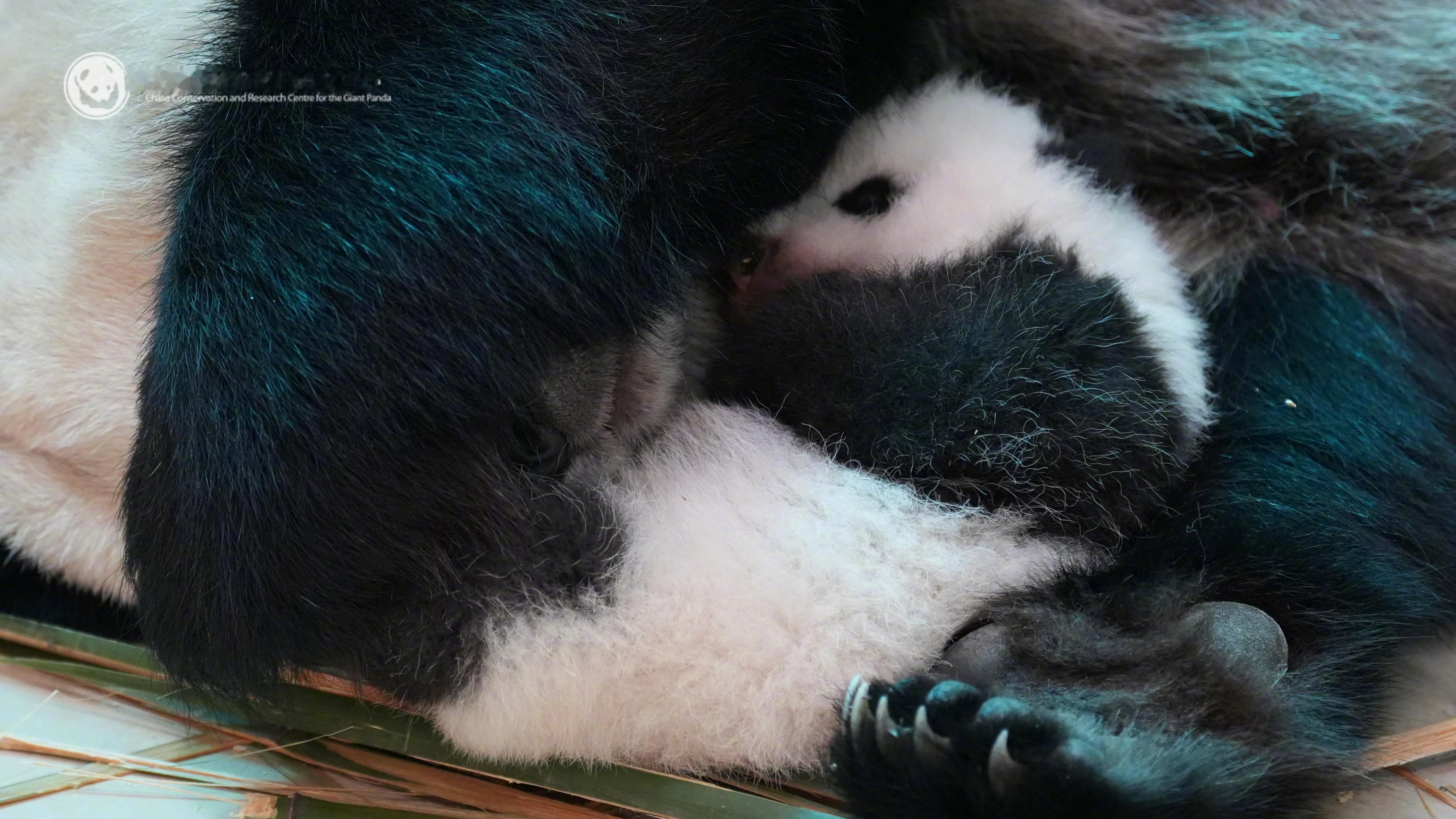 熊猫宝宝和妈妈脸贴脸睡觉好暖 在妈妈爱的守护下,“辰汐大崽”安然地睡着……(图源