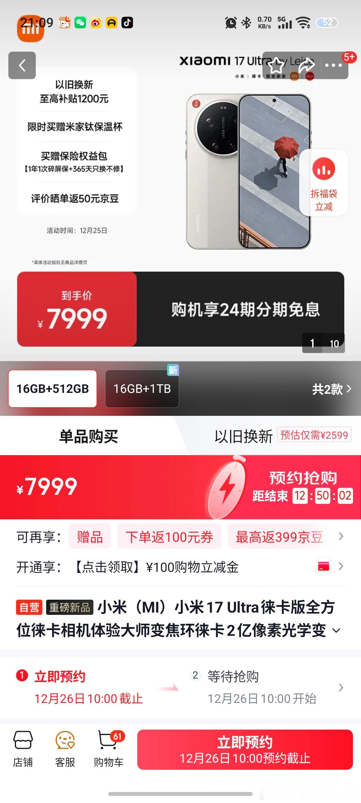 小米17Ultra徕卡版售罄看来小米还是低估了大家的热情了,小米17 Ultra徕卡版已经售罄,电商平台也没货了。和我预测的一样,大家都更喜欢徕卡版本,在差价不大的情况下,有徕卡标和大师变焦环这个卖点确实可以。大家都买到了吗?如果不是实力有限,我也买了,可惜实力不够。