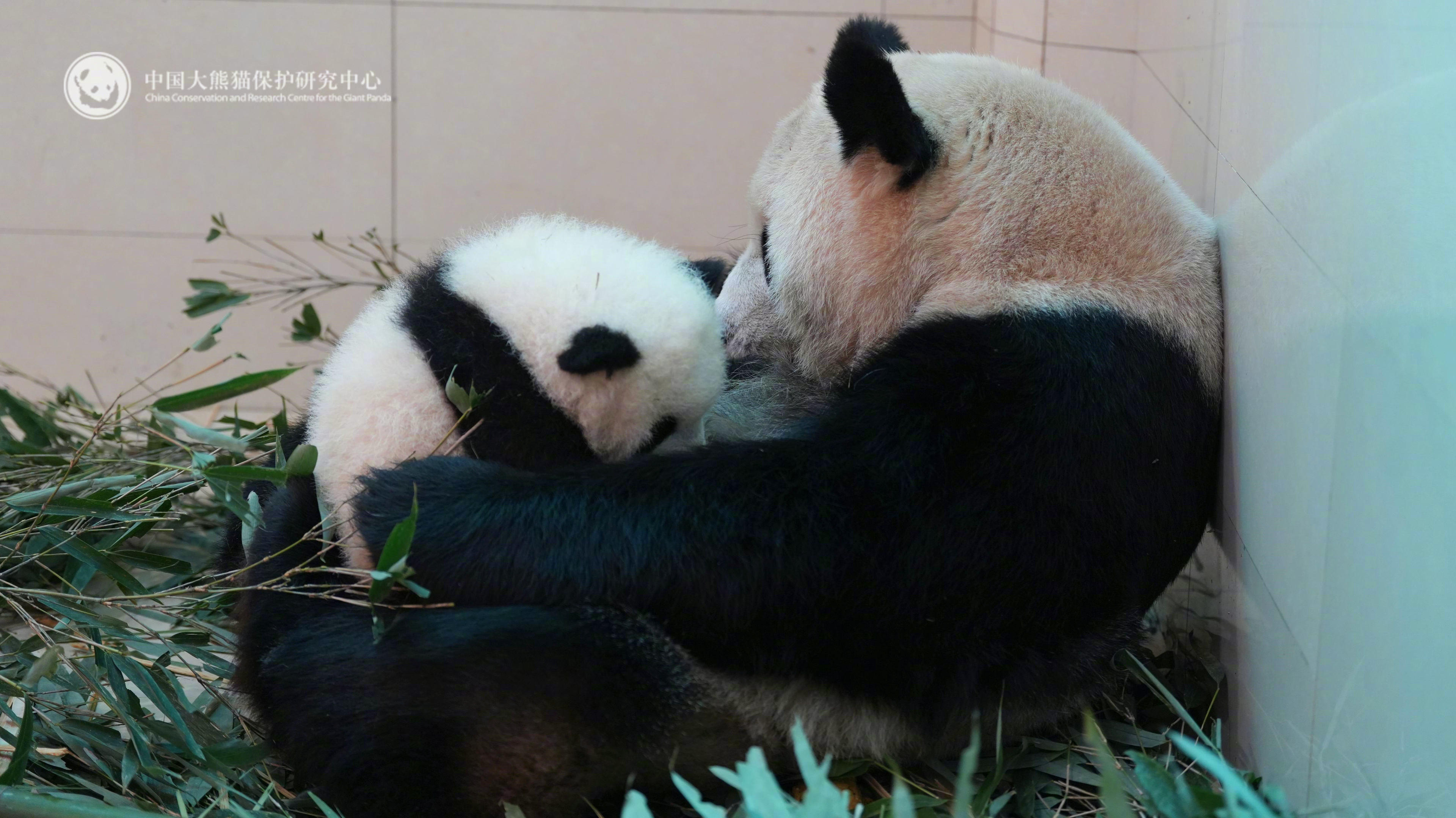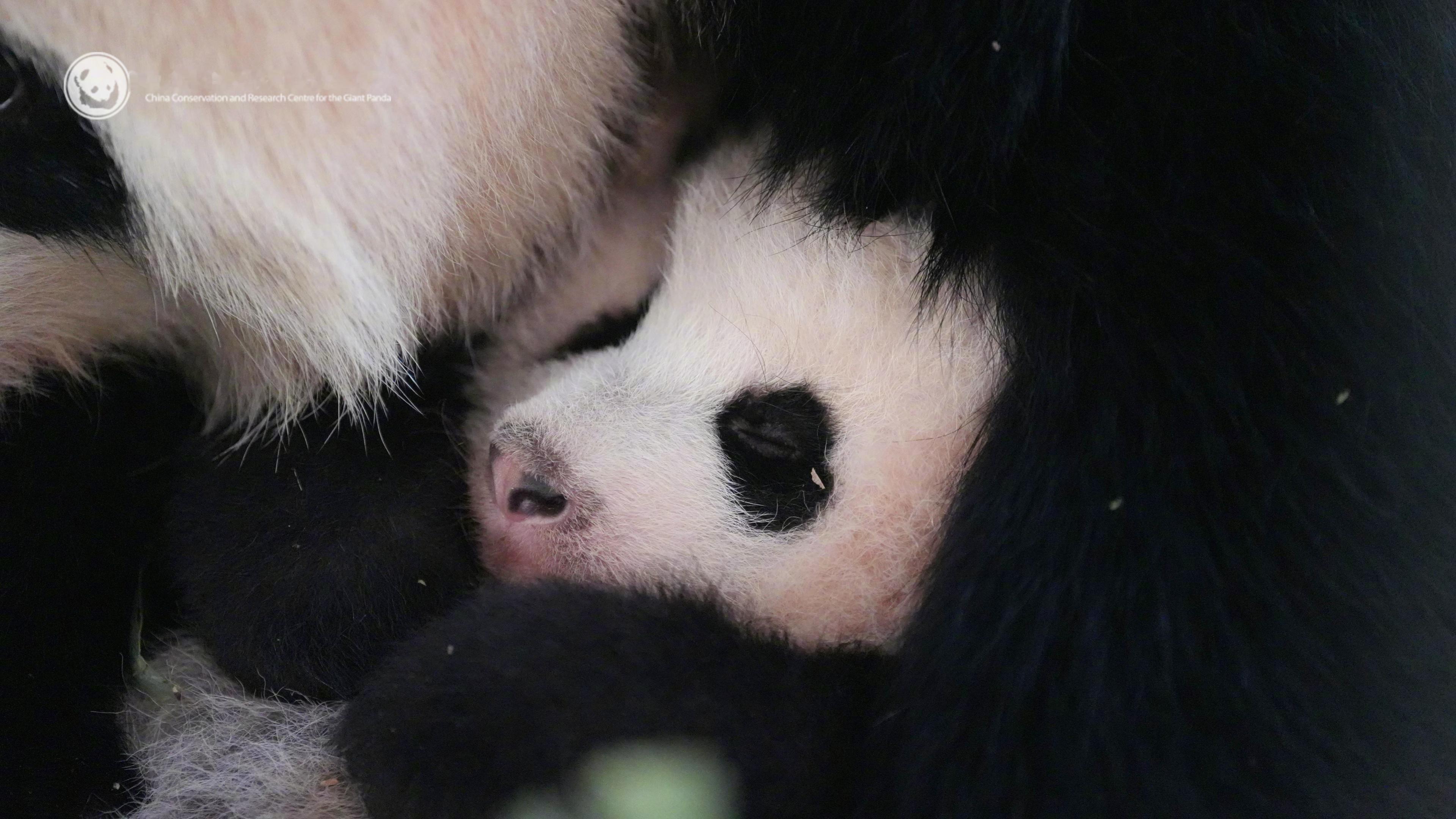 熊猫宝宝和妈妈脸贴脸睡觉好暖 从妈妈的怀里到更大的世界,“辰汐二崽”探索地图扩张