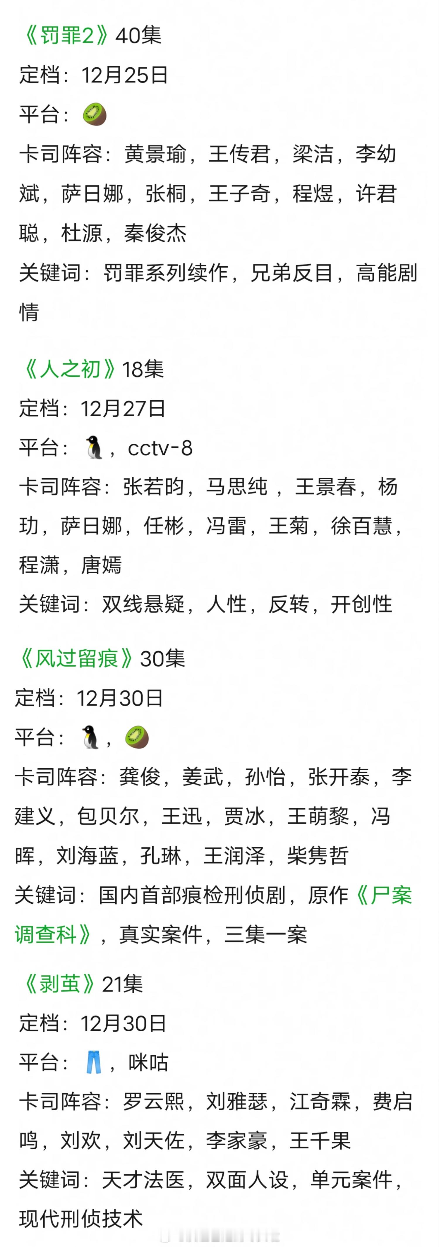 跨年悬疑四宝,你们看好哪部剧?黄景瑜《罚罪2》张若昀《人之初》龚俊《风过留痕》罗云熙《剥茧》罚罪2 罚罪2开播 罚罪1