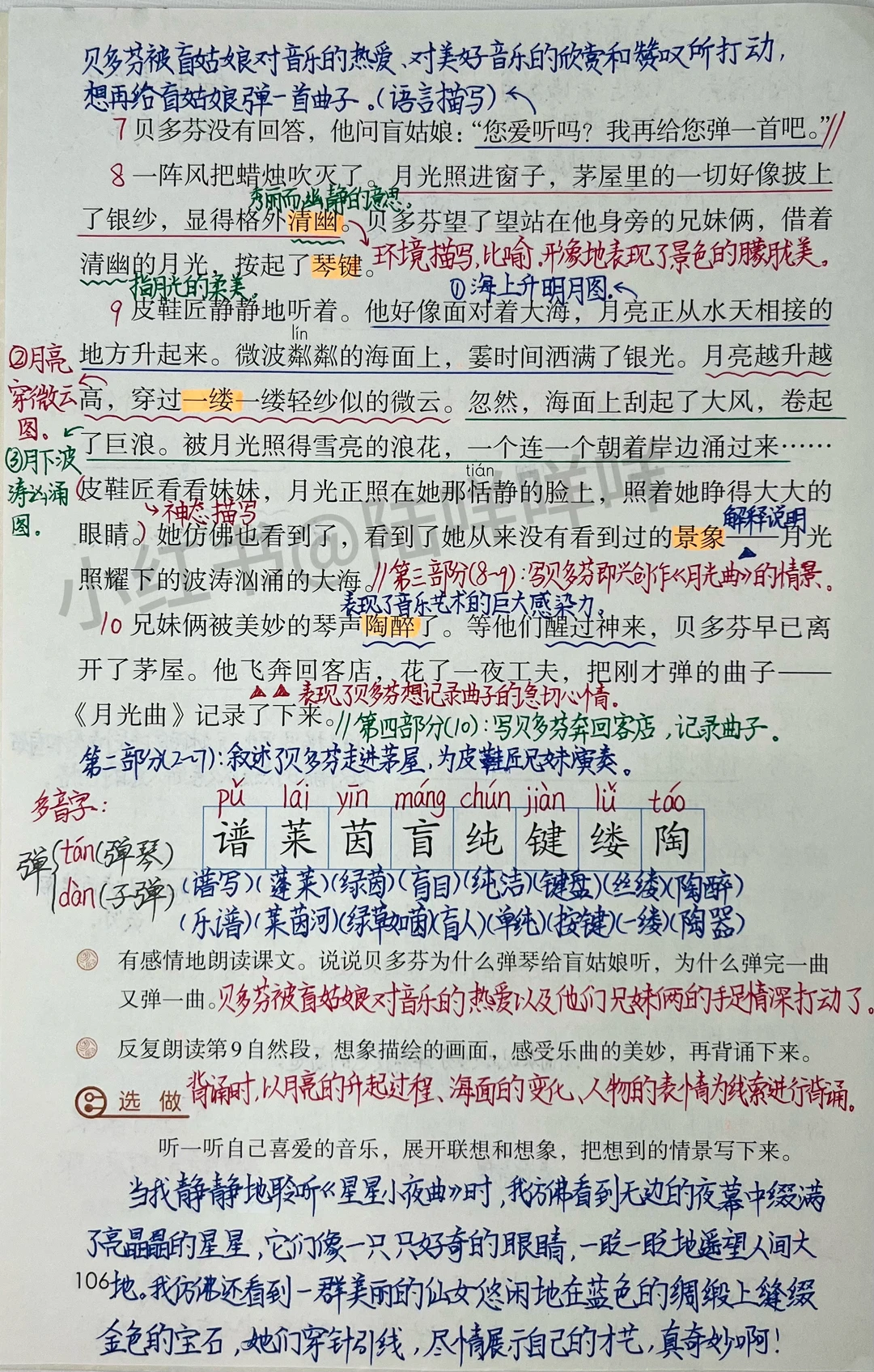 3.了解贝多芬创作《月光曲》的经过,体会他在创作过程中情感的变化,感受他对兄妹俩的同情和关爱。(重点)