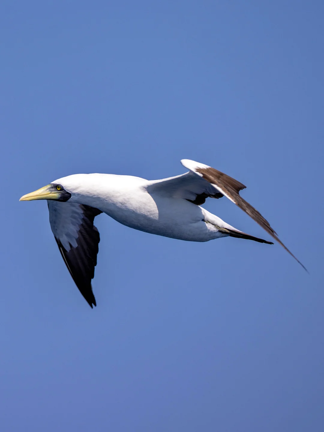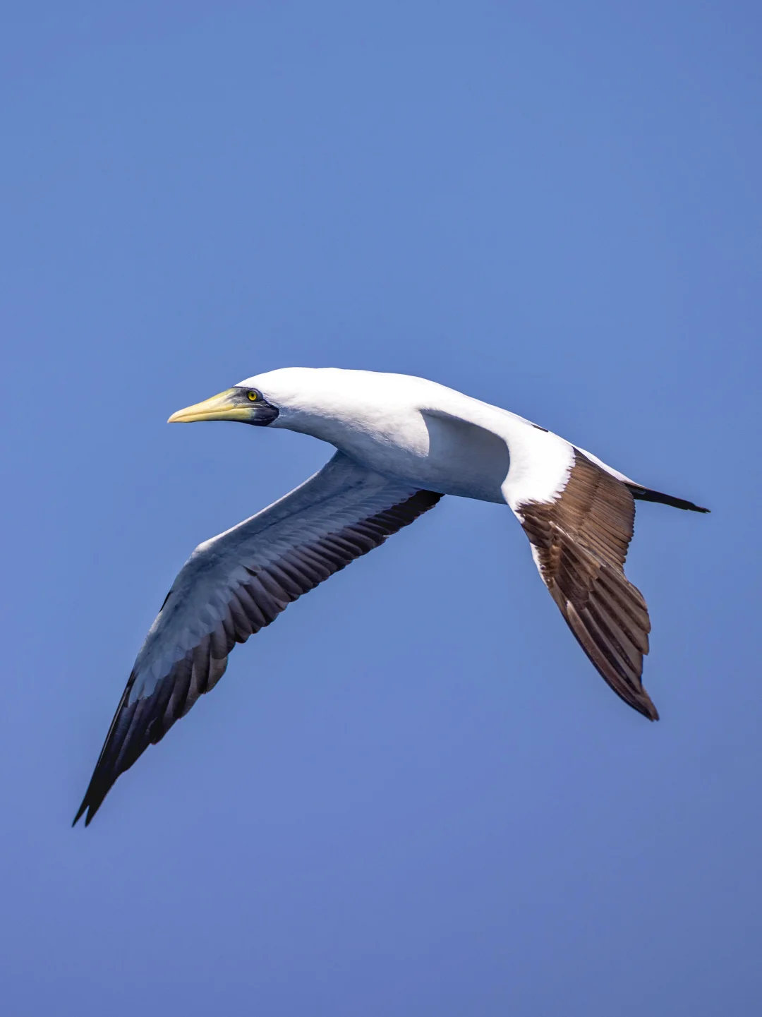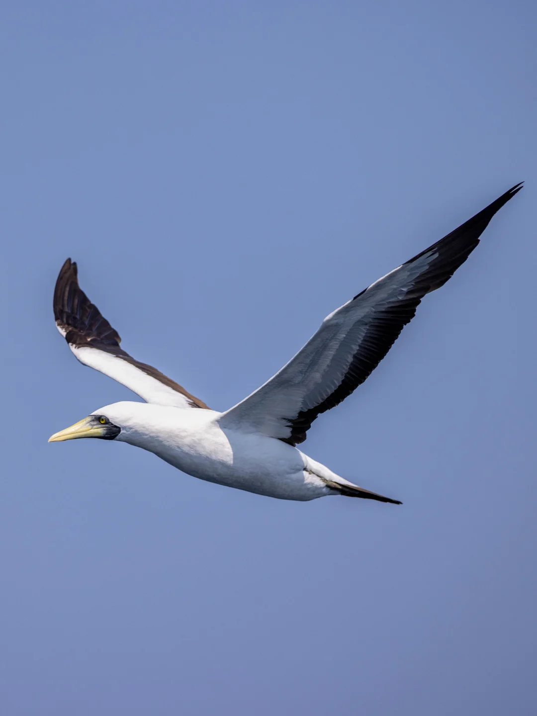 原创拍摄于2025.03 蓝脸鲣鸟,Masked Booby,是鲣鸟目鲣鸟科鲣鸟属。在全球热带地区广布,不过更喜欢远离大陆的岛屿。 蓝脸鲣鸟顾名思义,以蓝色面部著称,配以黄色喙和黑白的羽色,很漂亮。 这次出海,大部分的蓝脸鲣鸟都离得挺远,远远的在海上空飞过。唯独有一只被发现停在水上,于是我们开船靠近,它还好奇的从船头飞过观察一下,真是给面子哈哈哈。