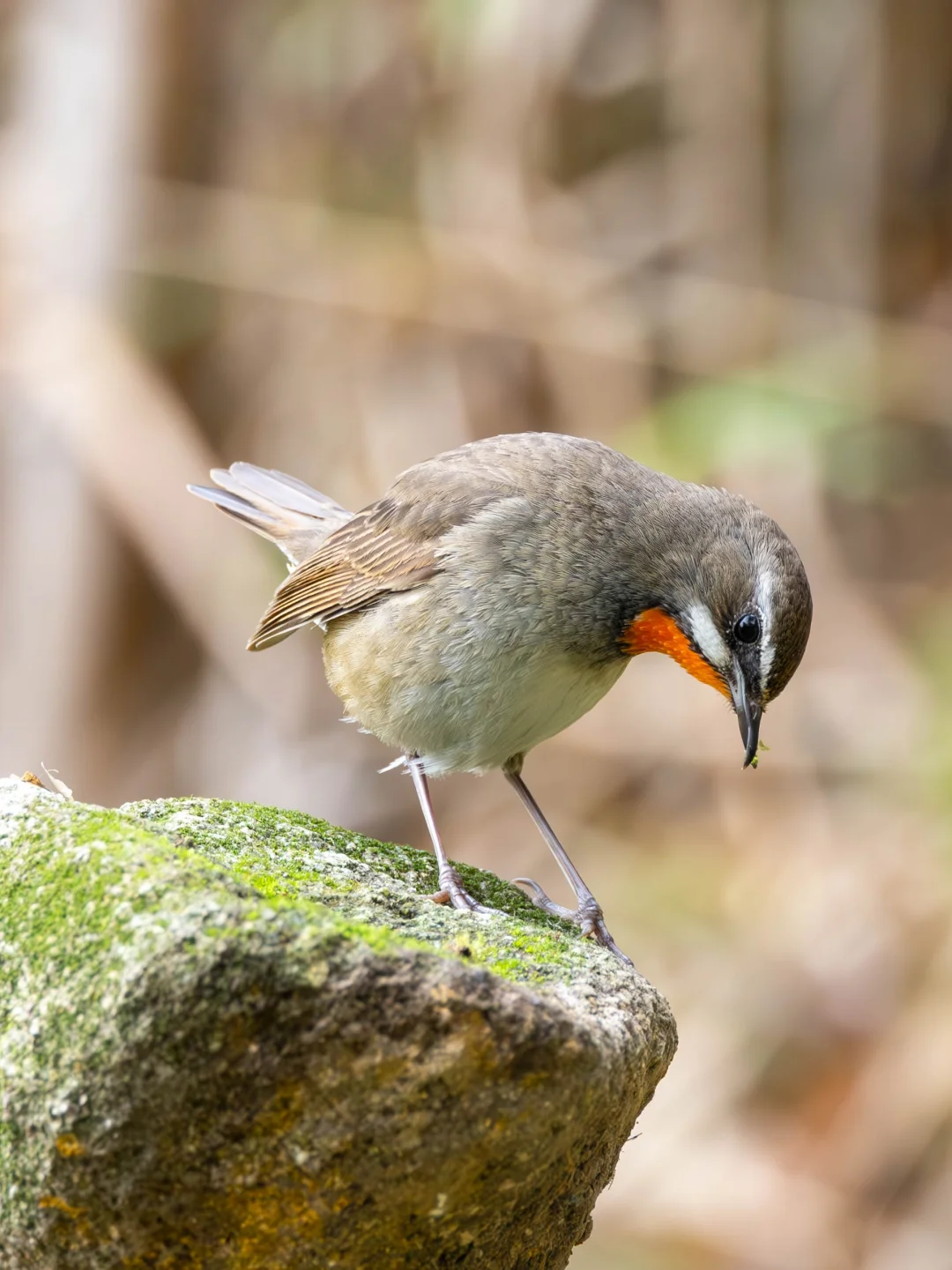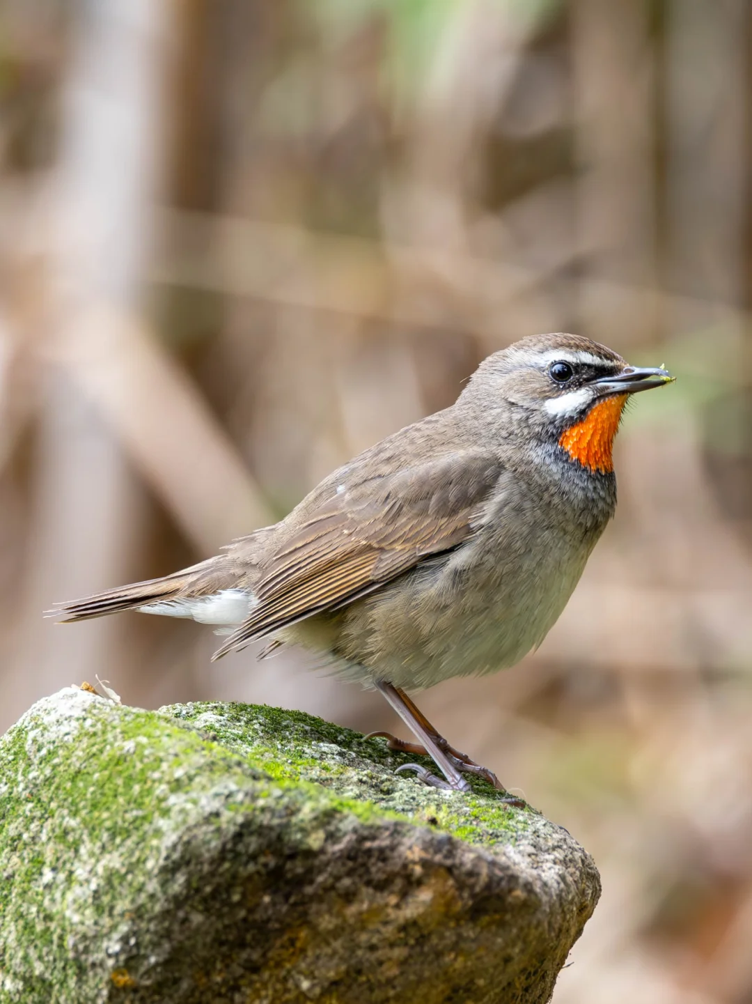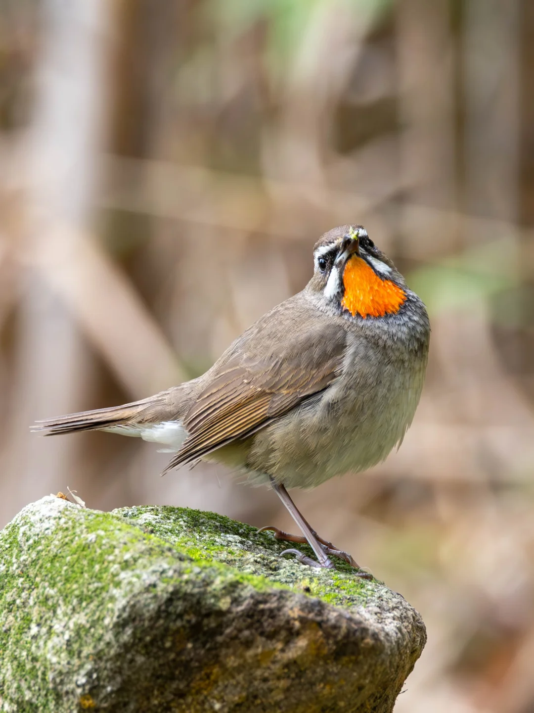 原创拍摄于2025.02 红喉歌鸲,Siberian Rubythroat,雀形目鹟科野鸲属。 红喉歌鸲雄鸟有鲜艳的红色喉部,非常显眼,并且带有醒目的白色眉纹和颊纹,特征明显,不会错过。 红喉歌鸲冬季在我国靠近东南亚的南部地区过冬,这只雄鸟已经在深圳凤凰山下度过了冬季。仔细看他的喙上下有一些错位,不过貌似不影响生活。并且在我们面前热情的展示他傲人的红喉。