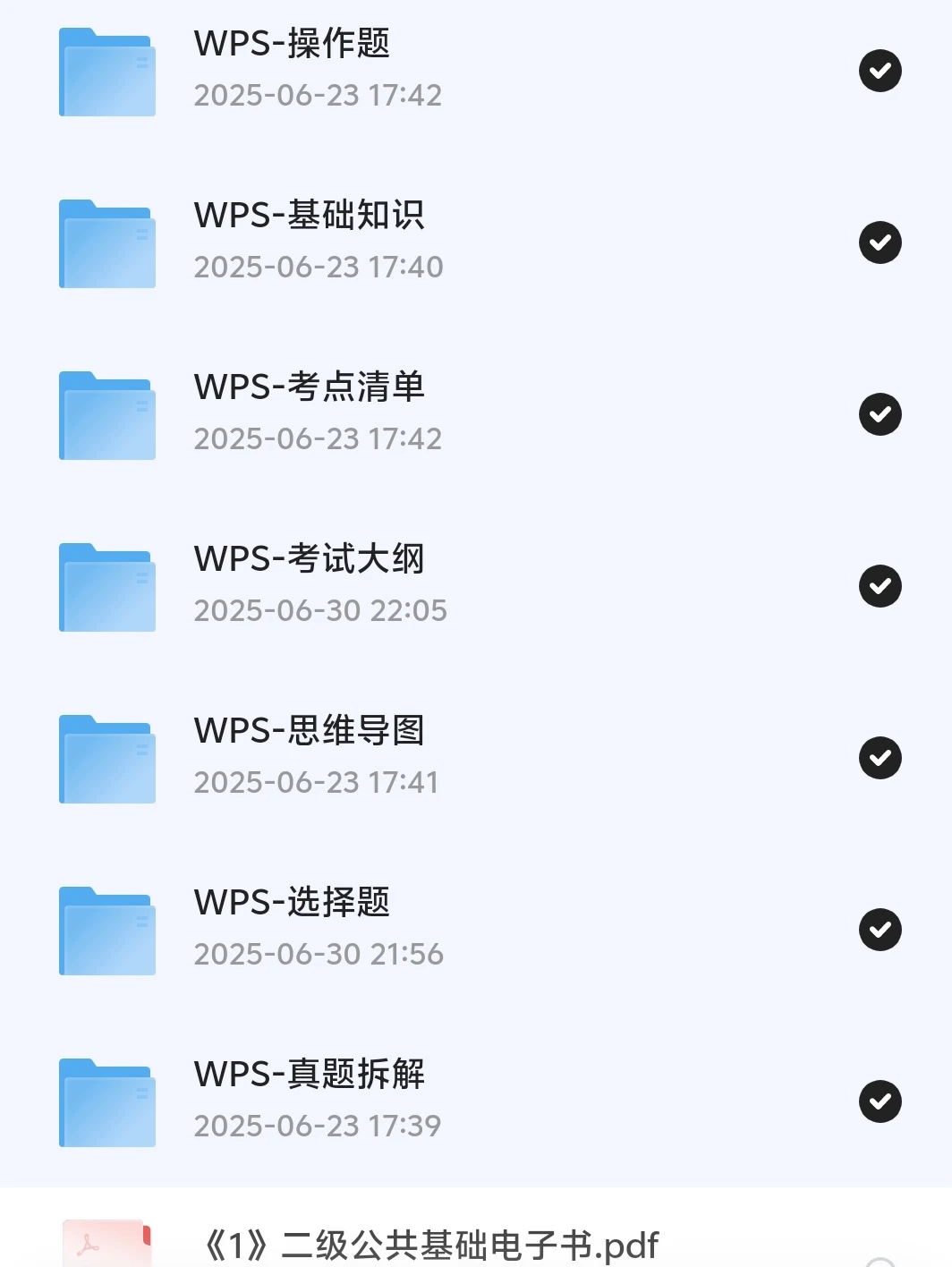 大家可能有这样的困扰[失望R] 1.计算机二级报名完成考啥内容?[抓狂R] 2.二级wps到底看啥内容?[抓狂R] 3.了解完考啥内容之后,又焦虑市面上操作题这么多到底练习哪个?[抓狂R] 4.听谁的课程比较好?[失望R] 5.几百的报班行不行到底能不能过?[哭惹R] 6.最终要是如果自己备考到底准备啥?[石化R] 学长还是为大家尤其小白准备的备考清单。用心整理的,大家暑假快乐备考吧!