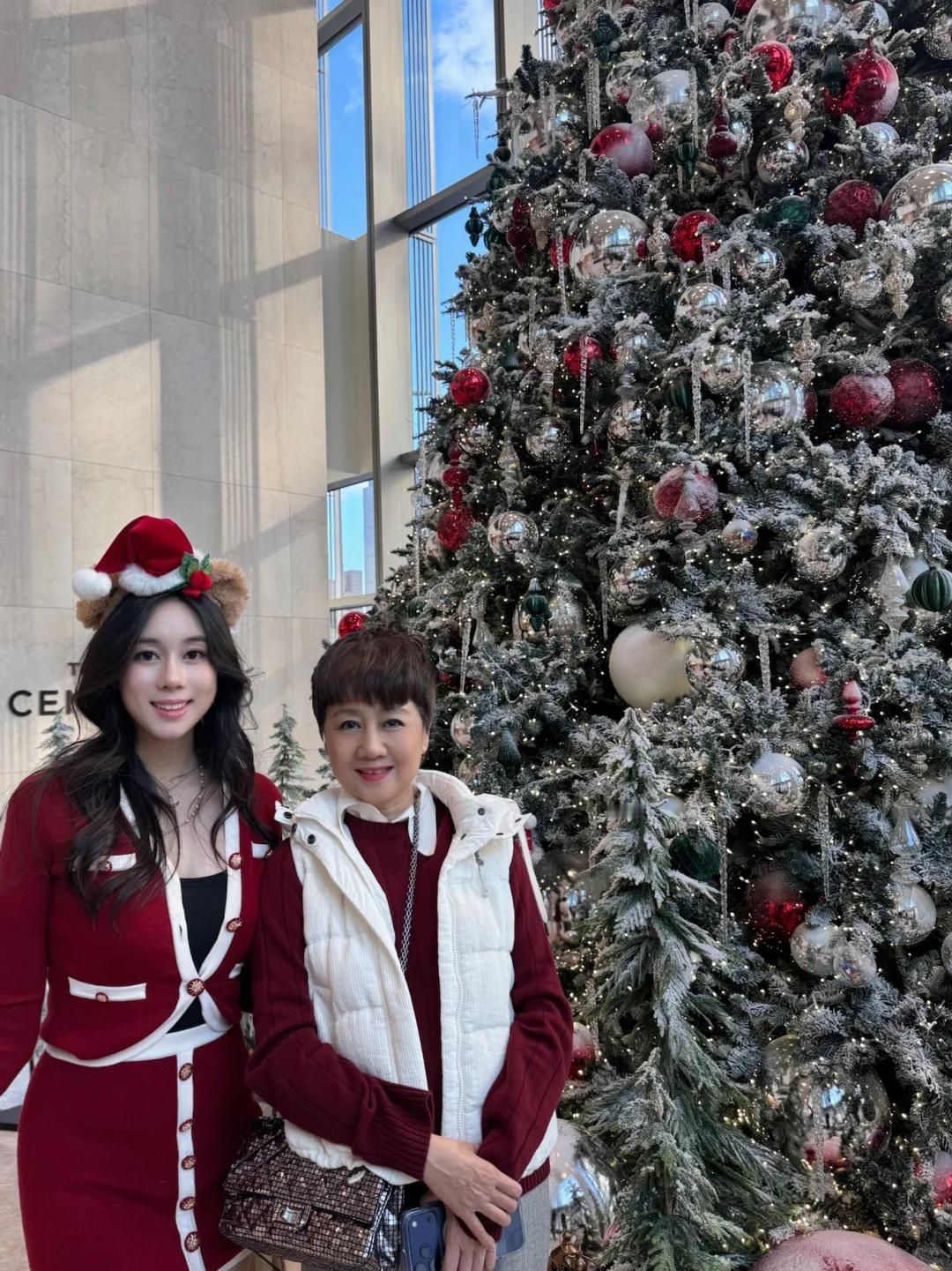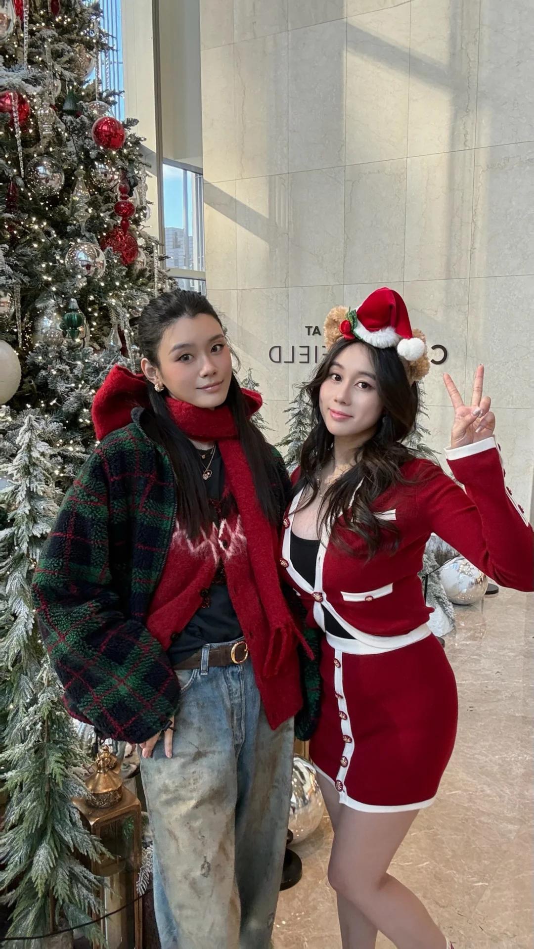 何超欣晒出和妈妈梁安琪、还有嫂子奚梦瑶的圣诞装