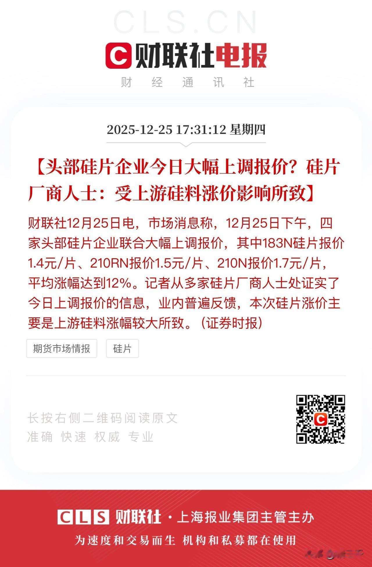 电池板块涨价周期开启! 六氟磷酸锂龙头天际股份接近三连板, 尾盘炸板略有遗憾, 但是产业涨价环节打响的第一枪, 四季度它们业绩好是板上钉钉, 现在资金关注的是涨价周期持续多久。 无独有偶, 硅片头部企业也纷纷上调价格, 提价幅度平均达到12%! 还有一点不可忽视, 那就是年底本是传统淡季, 电池厂有设备检修的要求, 锂电池正极材料湖南裕能率先发布检修公告。 但淡季不淡头部大厂都是接近满产状态, 停产检修会刺激囤货大战, 一个月的发酵时间够了! 抓牢电池这条主线…