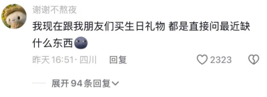 我现在跟我朋友们买生日礼物 ,都是直接问最近缺什么东西