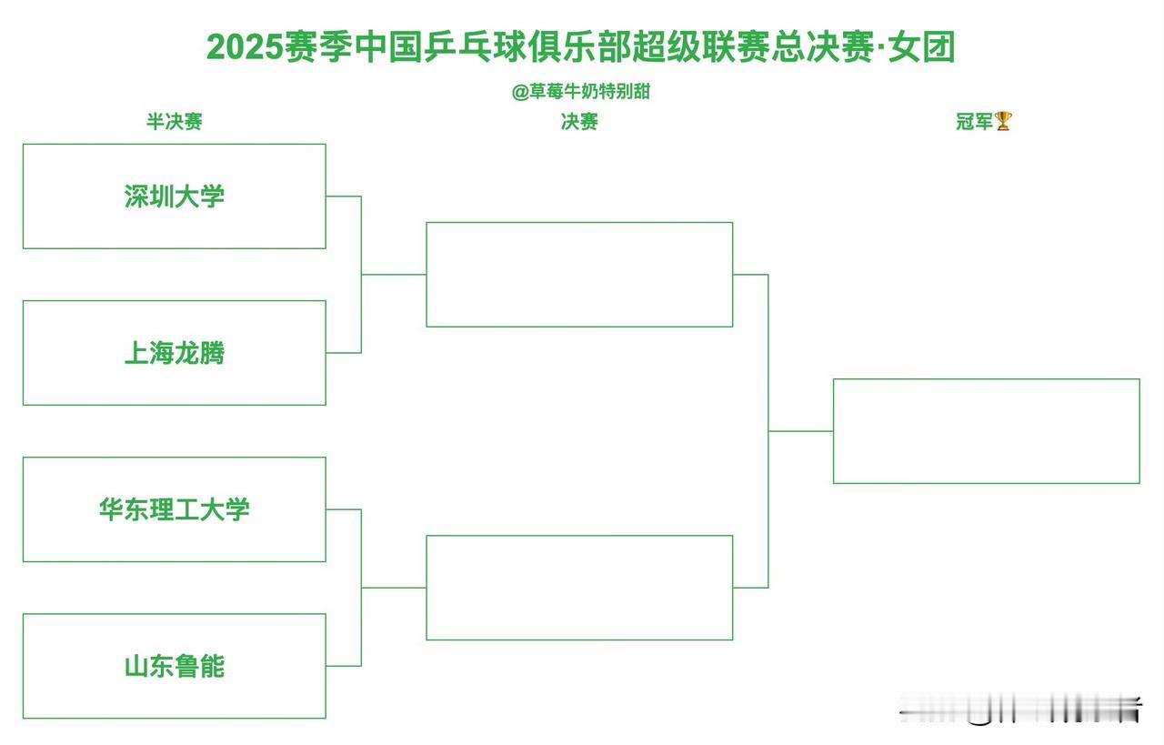 今天,2025年乒超联赛总决赛将在南京拉开帷幕。中午11点率先开始的将是女团的首场半决赛,由深圳大学对阵上海龙腾,目前双方的对阵已经公布。 令人遗憾的是,深圳大学的绝对核心、世界排名第一的孙颖莎因伤退出了本次总决赛。而直到今天深圳大学才对外宣布了这一消息,不得不说为了票房他们都拼了。 由于孙颖莎不能打,蒯曼将成为深圳大学的第一单打,分别对阵刘炜珊与何卓佳。首场女双由平野美宇搭档覃予萱,对阵何卓佳孙铭阳。第三场女单由覃予萱迎战孙铭阳,最后一场女单平野美宇对刘炜珊。乒超总决赛 南京乒超总决赛 乒超赛程表