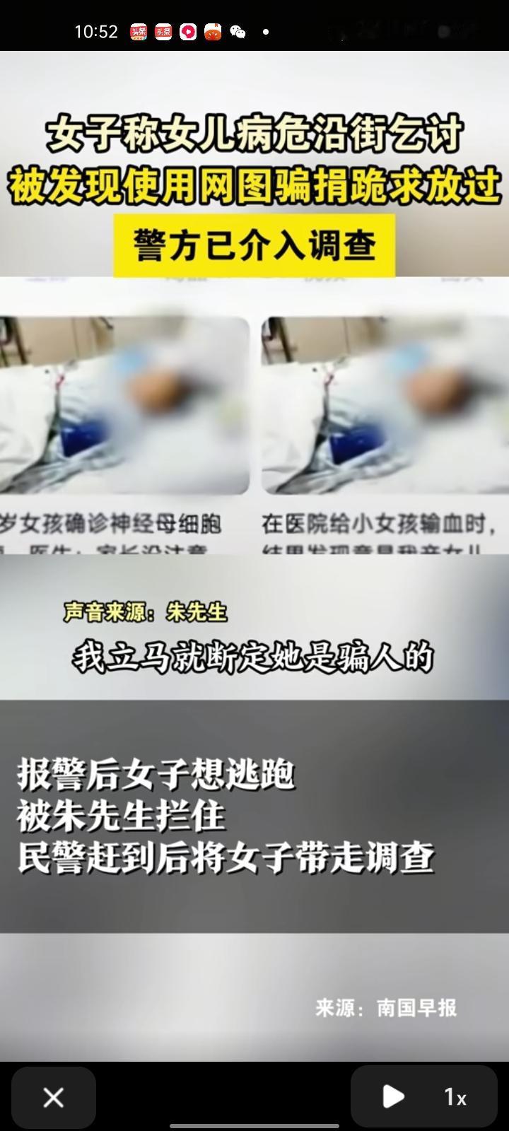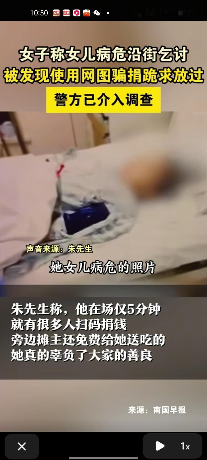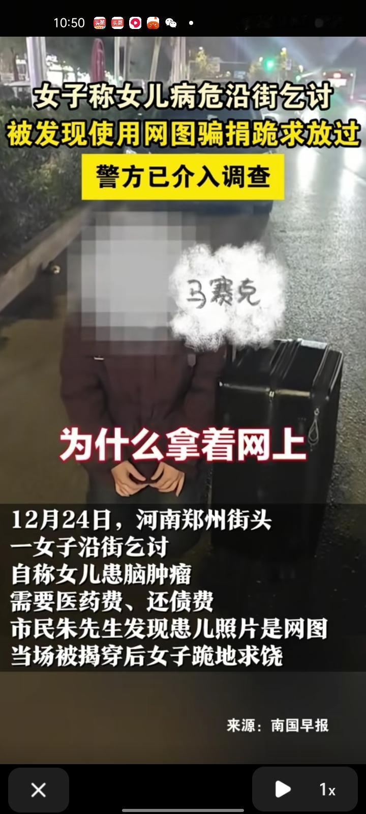 12月24日,河南郑州。网友晒视频称,女子沿街乞讨,称自己的女儿患脑肿瘤,需要医药费、还债费。搜这张图片才发现居然是网图,就断定她是骗子,女子被当场揭穿后跪地求饶,自己则不会惯着她。报警后女子企图逃跑被拦住,民警赶到后将女子带走调查。 当事人朱先生称,自己在场仅五分钟就有很多人扫码捐钱,旁边摊主免费给她送吃的,她真辜负大家的善良。 市民们出于本能的同情伸出援手,却被虚假的“苦难”所利用,这不仅是对个人爱心的伤害,更是对社会信任基础的侵蚀。朱先生的“神判断”固然值得肯定,但更值得反思的是:当善意屡屡被消费,人们是否会逐渐变得冷漠?这才是真正的危险所在。 要避免这种恶性循环,一方面需要像朱先生这样的人保持理性与警觉,遇到可疑情况多查证、多质疑;另一方面,也需要完善社会救助与监管机制,让真正需要帮助的人有正规渠道,让利用他人善良行骗的人付出应有的代价。只有当制度能为善意兜底,当真相能被及时戳穿,我们的爱心才不会被辜负,善良才敢放心地“裸奔”。