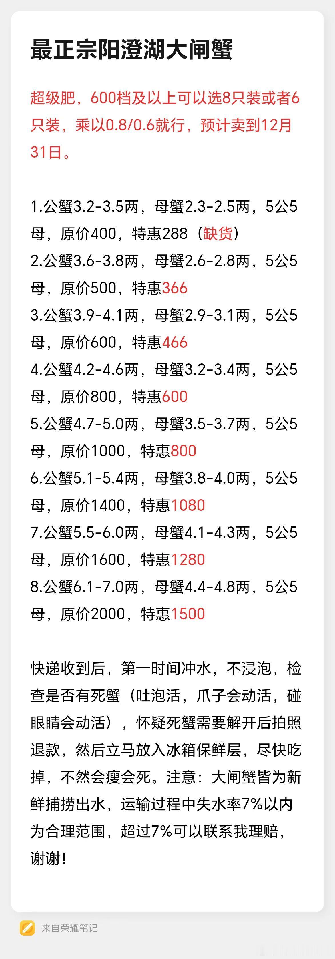 蟹季还有4天结束了,要吃蟹的童鞋,赶紧下单了,今年最后的机会了,私信我,谢谢!