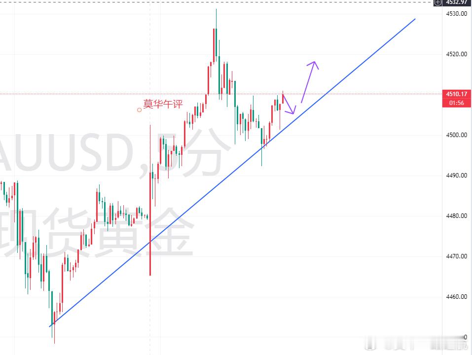 12.26午评 今天开盘在4465一线直接开启反弹模式,没带一点回踩迹象,其走势甚至有点低开都觉得是多余,但是毫不影响多头上涨的趋势,截止目前黄金已经在4500一线上方震荡了,多头随意刺破4500一线关口,这就说明多头的力度还是相当强势的,每次回踩都是为了更好的上涨,每次回踩都是为了更好的冲高,今天我们关注下方两个地方的支撑位置,第一个是4480-4485一线支撑处,第二个是4470附近的支撑情况,虽然多头强势,但是得继续保持回踩做多的势头进行,而且是坚定不移的看上涨趋势。 前天我们预估的回踩的第一是下方4470一线也是形态支撑,第二下方4445-4450一线也是重要支撑位全部已经达到,从周四凌晨休市走势来看,黄金触底4448一线反弹,这样完全符合田浩洋本人分析思路,多头不熄,反弹不止,黄金今天开盘在4465一线,便直接冲破4500一线,毕竟多头一直处于强势地位,回撤调整之后就显得越发强势。具体操作策略我会在盘中提示,及时关注。黄金黄金具体行情思路:1、黄金回踩4490-4495一线多,回踩4470-75附近补仓做多,止损4463一线,目标4530-4535一线,破位继续持有。