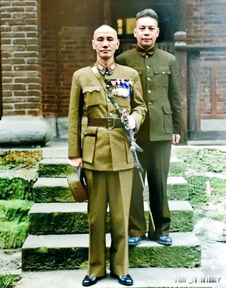 这便是蒋中正和蒋经国的真实模样,大家瞧瞧!这绝非演员饰演,确是货真价实的本人,容貌清清楚楚一目了然!这张老照片摄于1945年,彼时他们父子二人在重庆官邸。