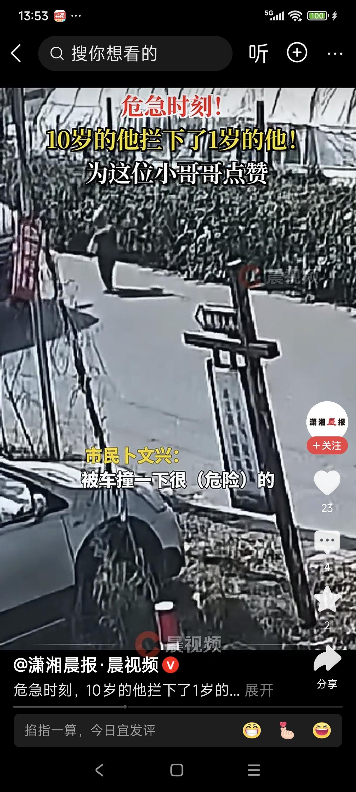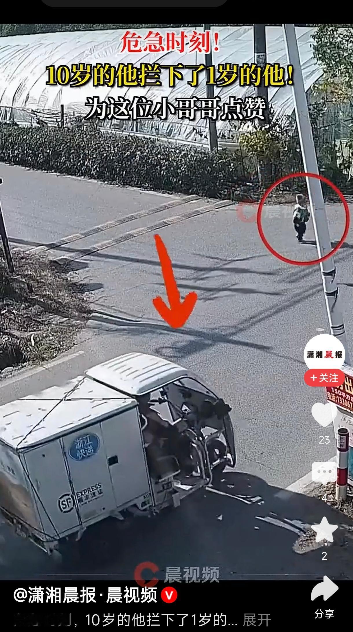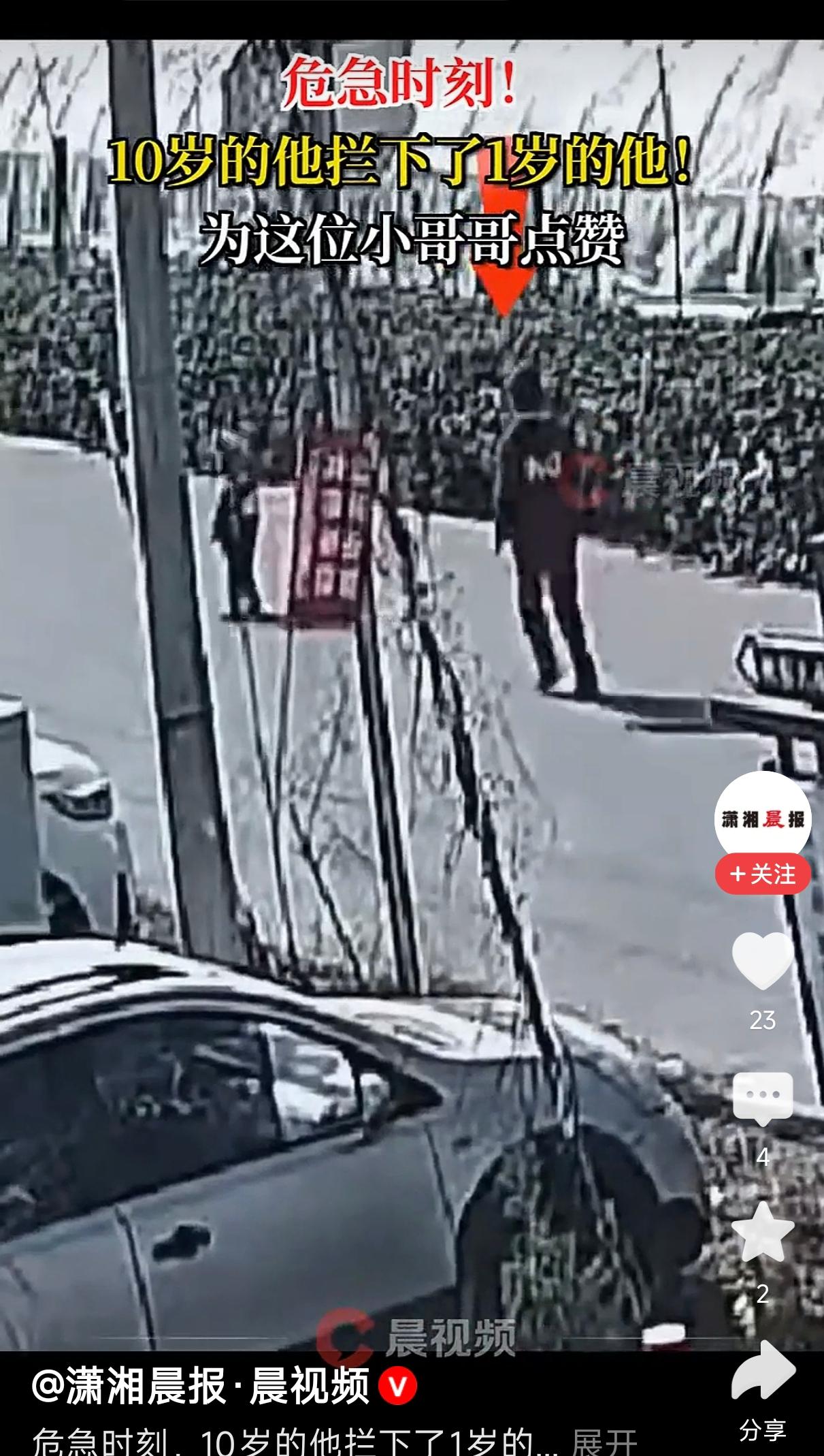 危急时刻10岁小孩拦下1岁幼童 这是一则令人感动的新闻,10岁的孩子在危急时刻勇敢地拦住了1岁的幼童,展现出难得的勇气和责任感。这种行为不仅体现了少年儿童的善良和担当,也让人对未来充满希望。为这位小哥哥点赞!男童救人 儿童见义勇为