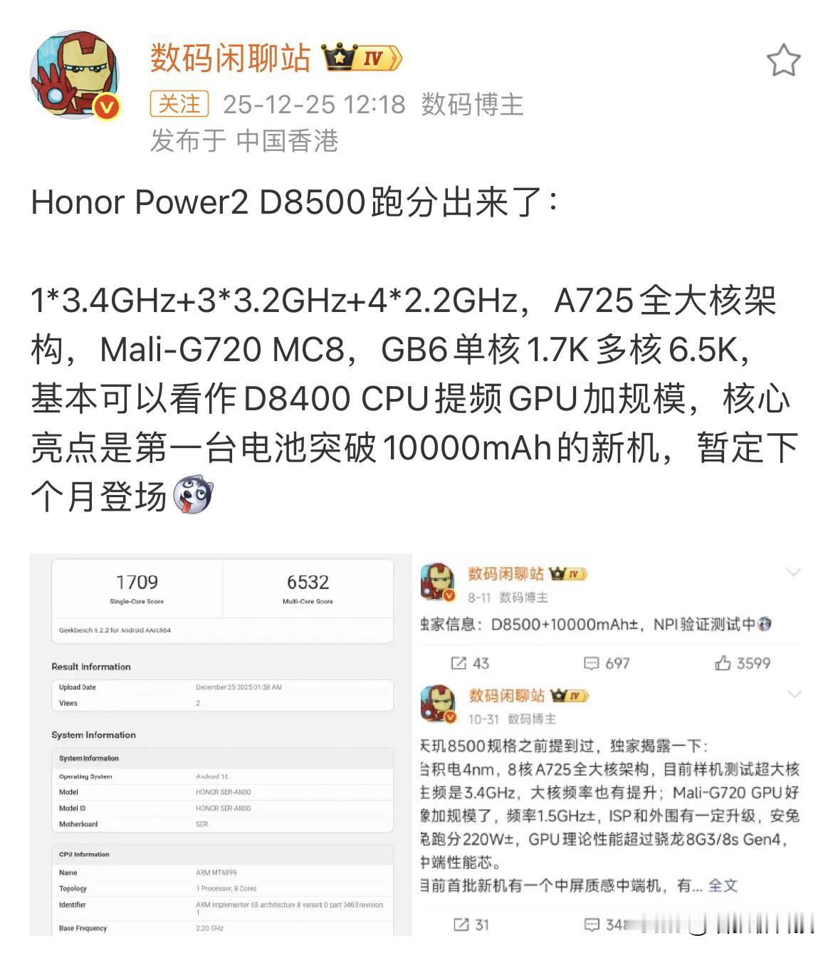 没有最像,只有更像!荣耀 Power 2 这外观绝了~ 虽然说现在国产中端机的果味都很浓郁,但这款新机不但像,甚至据说手机壳都能通用... 同样摆放的三摄模组,同样的横向大矩形Deco,甚至主打色也相当雷同。 除了外观方面相当亮眼外,荣耀 Power 2 的配置也挺有特长。 再次打破自家的最大电池容量,配备 10080 mAh 超大容量电池,并支持 80 W 快充; 搭配上联发科全新「天玑 8500」处理器,续航表现相当令人期待。 如果对续航有比较高需求的用户,还是可以等等这款新机的。