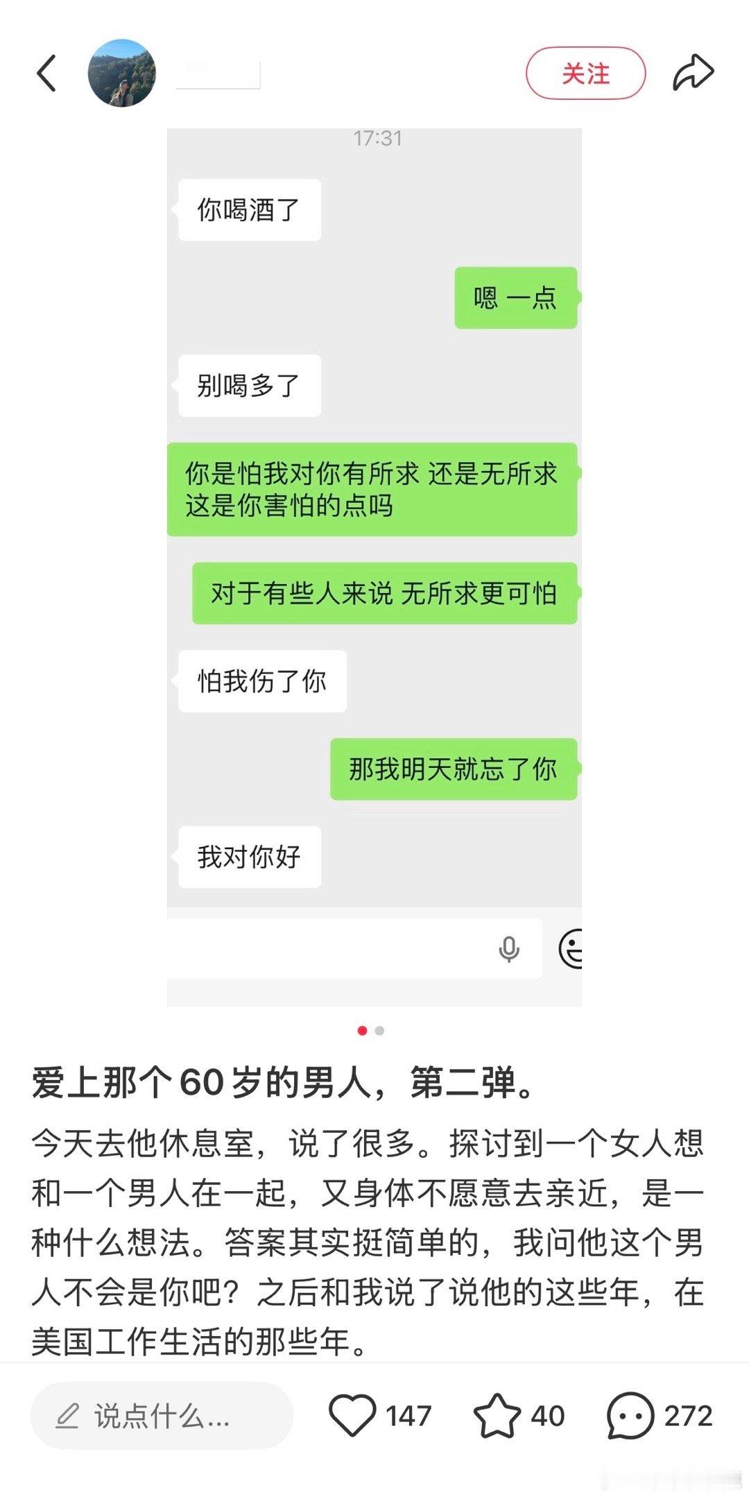 我原来的一个女同事,比较open,属于情史极混乱的,前前后后交了20几个男朋友。