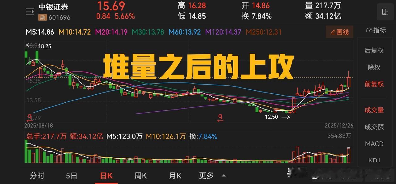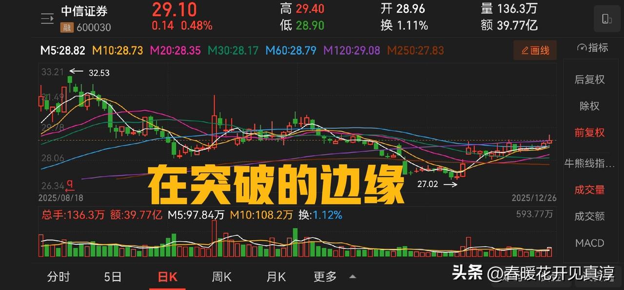 今天证券板块异动,中银证券放量上攻,虽然收盘有所回落,但可以确认这是一个积极信号。中信证券、国盛证券等都蠢蠢欲动,冲锋号要吹起来了。 券商板块横盘来到均线压制位置,这里一旦放量上攻,就是板块点火的信号。 中信证券也是如此,下周一极有可能会形成板块性的突破,中信证券将会是突破的有生力量。前两天有朋友留言问中银证券是否还有机会?我说肯定有。结果接着有网友留言问依据是什么?这东西不需要什么依据,如果这个图看不懂的话,权当我啥也没说。 投资考验的就是判断力,判断一个事情肯定有依据,但是你如果追着问依据是什么,那要看心情。 千万别把自媒体都当成是要饭的,如果那样的话,就没必要看,反正我的态度就是这样。 你想要情绪价值的话,去看那些娱乐博主多好,付出一毛钱就能换来一句谢谢。