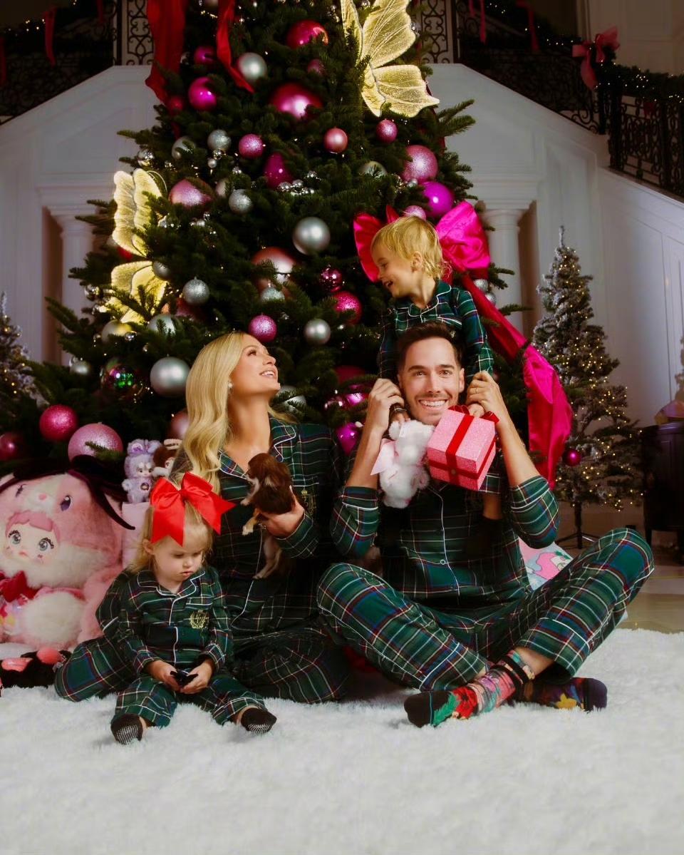 希尔顿大小姐帕里斯.希尔顿晒出一家四口圣诞全家福,儿女双全,很幸福! 帕里斯希尔顿晒出了两组圣诞照,不过只有第一组,一家四口齐齐穿着森林绿家居服时,丈夫才出镜。 帕里斯怀中抱着小女儿伦敦,丈夫肩头坐着儿子菲尼克斯,帕里斯希尔顿笑得很幸福。 2岁的伦敦和3岁的菲尼克斯金发碧眼,虽然是代孕所生,但是依旧继承了妈妈帕里斯的高颜值。 尤其是2岁的伦敦,肉嘟嘟的小脸,金发碧眼,头发上还别着红色蝴蝶结,更是显得甜美可爱。 帕里斯作为希尔顿大小姐,曾经也是爱玩爱闹,但是自从成为妈妈后,全身心都在照顾两个可爱的孩子,时尚丽人多了母性的温柔,对两个孩子真的好宠。