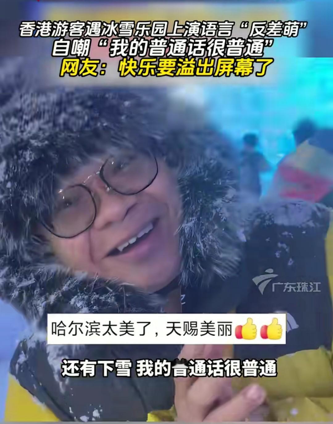 能看出来,这位香港大叔是真的很喜欢哈尔滨,不停地赞美这里很美。 这几天,正好是香港放圣诞假,不少香港人跑来内地旅游,这位香港大叔去的是哈尔滨,隔着屏幕都能感受到他的激动和开心,他说他的普通话很普通,还说学会了句东北话“嘎嘎香”。