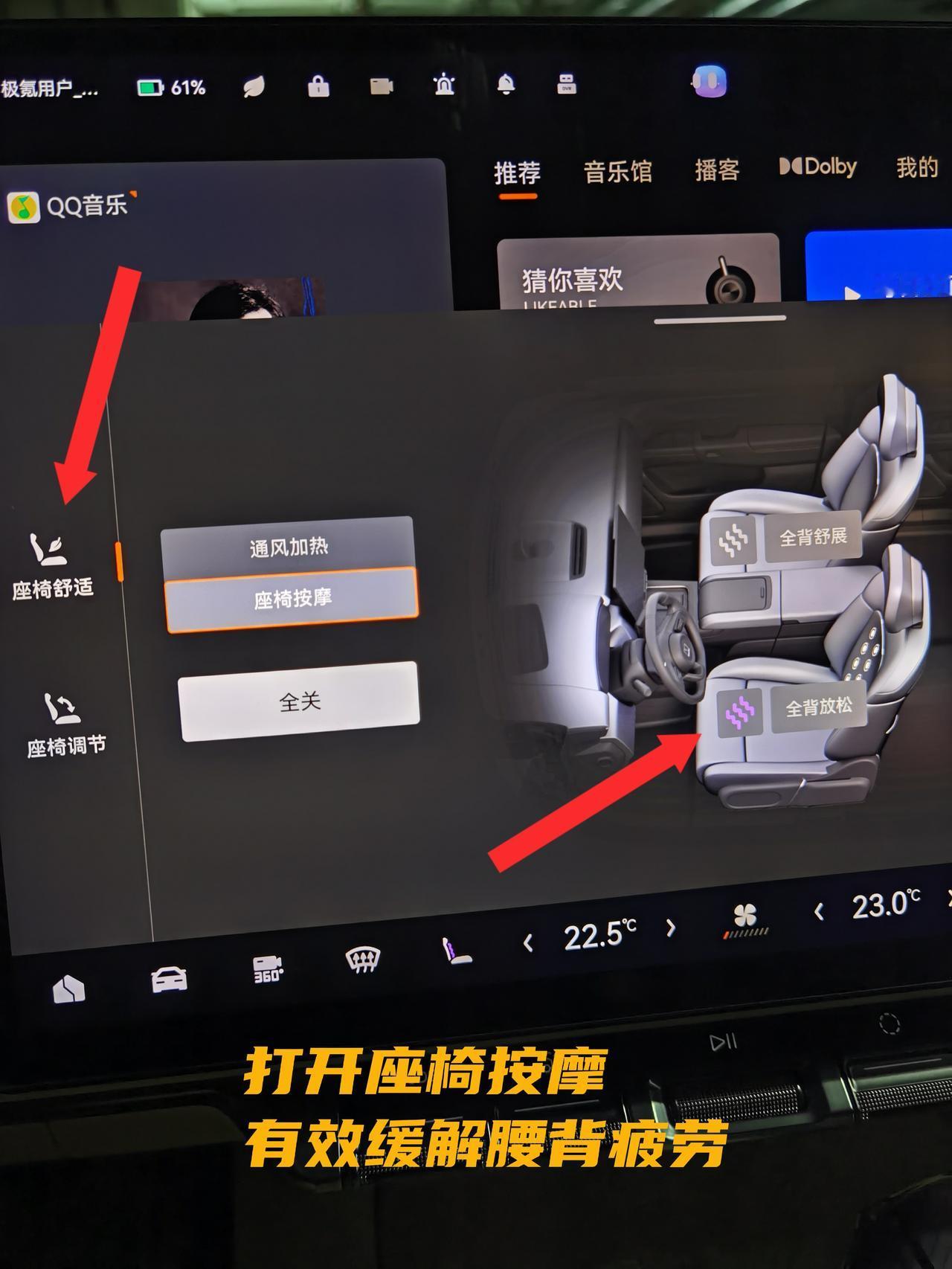 👉我的爱车是2025款极氪7X四驱长续航版。2025年1月19日提车,至今行驶了19000公里。 👉在这里跟大家分享一下我开七茶的驾驶体验,特别是舒适性配置在缓解疲劳方面的经验。 ✅【乘坐舒适的基础保障】 👉极氪七茶是一款中型家用纯电SUV。这一个明确的定位让他的空间和乘坐舒适性都做得很不错。 👉虽然7X的定位是中型SUV,但它的内部乘坐空间特别是二排空间有中大型SUV的体验感。座椅高度,头部和腿部空间都很充裕。 👉另外就是它的座椅宽大柔软平整舒适。不管是前排还是后排,坐上去的感觉都是让身体感受到放松的状态。如果给车座的柔软度分成5个等级的话,七茶应该达到了4.5的水平。以至于一开始我不太能接受它座椅的这种柔软度。因为之前我开的是大众途昂X。德系车的座椅设计整体偏硬朗和运动风。所以突然感受极氪座椅的这种柔软感,有点不适应。但是当时家人坐着感觉很舒服,于是就尝试着接受它的座椅柔软度。没想到过了不长时间就适应了这种柔软度,有种家用沙发的即坐感。当然它也不是完全没有支撑度的那种柔软,应当说是在柔软度和支撑度之间找到了比较好的平衡。所以日常开车即便是堵车状态下一个小时之内是感觉不到乘坐疲劳的。 ✅【有效缓解驾驶疲劳】 👉但如果是跑长途,比如我长途行程的话一般在两到三个小时的行程,难免就会有腰酸腿麻的感觉。每当这个时候,我就会打开极氪七茶的座椅按摩功能。只需要三五分钟整个后背的疲劳感就能得到很大的缓解。 👉同时,还可以通过座椅靠背角度微调和座椅长度微调辅助缓解腰腿疲劳。使用效果也不错。 👉如果是在冬季,再配合打开座椅加热,缓解驾驶疲劳效果更加明显。 👉如果不仅有身体上的疲劳,还有精神上感到困倦的话,就需要打开音乐,适当放大音量,听两首快歌来缓解一下精神上的疲劳。收到音响,我的七茶配有21个扬声器功率达到了2千瓦以上,而且有7.4.1通道的杜比音响,整体效果还是不错的。至少已经满足了我这个业余发烧友的需求。 👉同时解决困倦的另一个办法是降低空调温度。比如原本设置的24度空调,把它降到20度,身体感到微冷的情况下,人会变得精神。 👉还有一条是特别值得强调的,就是七茶有疲劳驾驶提醒功能。只要你眼睛闭上两秒钟或者说是打了个哈欠。他马上就会通过声音提醒你在疲劳驾驶。如果你连续打哈欠,他就会启动座椅按摩功能但是只转几秒钟提醒你注意行车安全。另外它还会通过在中控屏上显示是否增加下一个服务区为途经点休息几分钟。总之它在解决疲劳驾驶确保安全行驶方面是下了功夫的,也确确实实达到一定的效果。 ✅【美中不足】 👉当然七茶的座椅按摩功能也并非完美。一是相较一些更高端的车型,它的按摩力度不是特别大。第二就是它的臀腿部不是按摩区域,覆盖面不算。 👉以上就是给车友们分享的我驾驶七茶采取的缓解驾驶疲劳的配置和办法,车友们还有什么好的缓解办法,欢迎分享。[来看我][送心][互粉]【来自懂车帝车友圈】