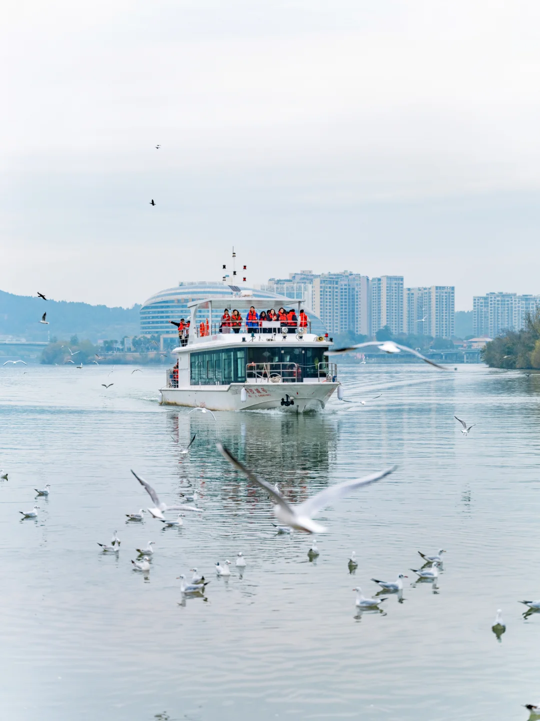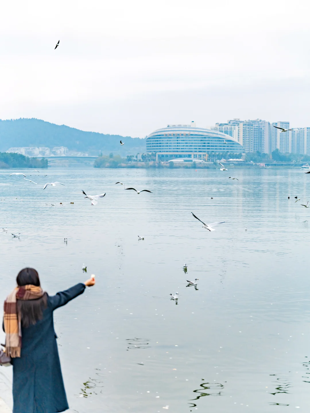 冬日浪漫必去❗ 涪江边的绝美机位!冬天有大批红嘴鸥飞来,带上面包就能零距离喂海鸥,出片率超高,江边还可以散步
