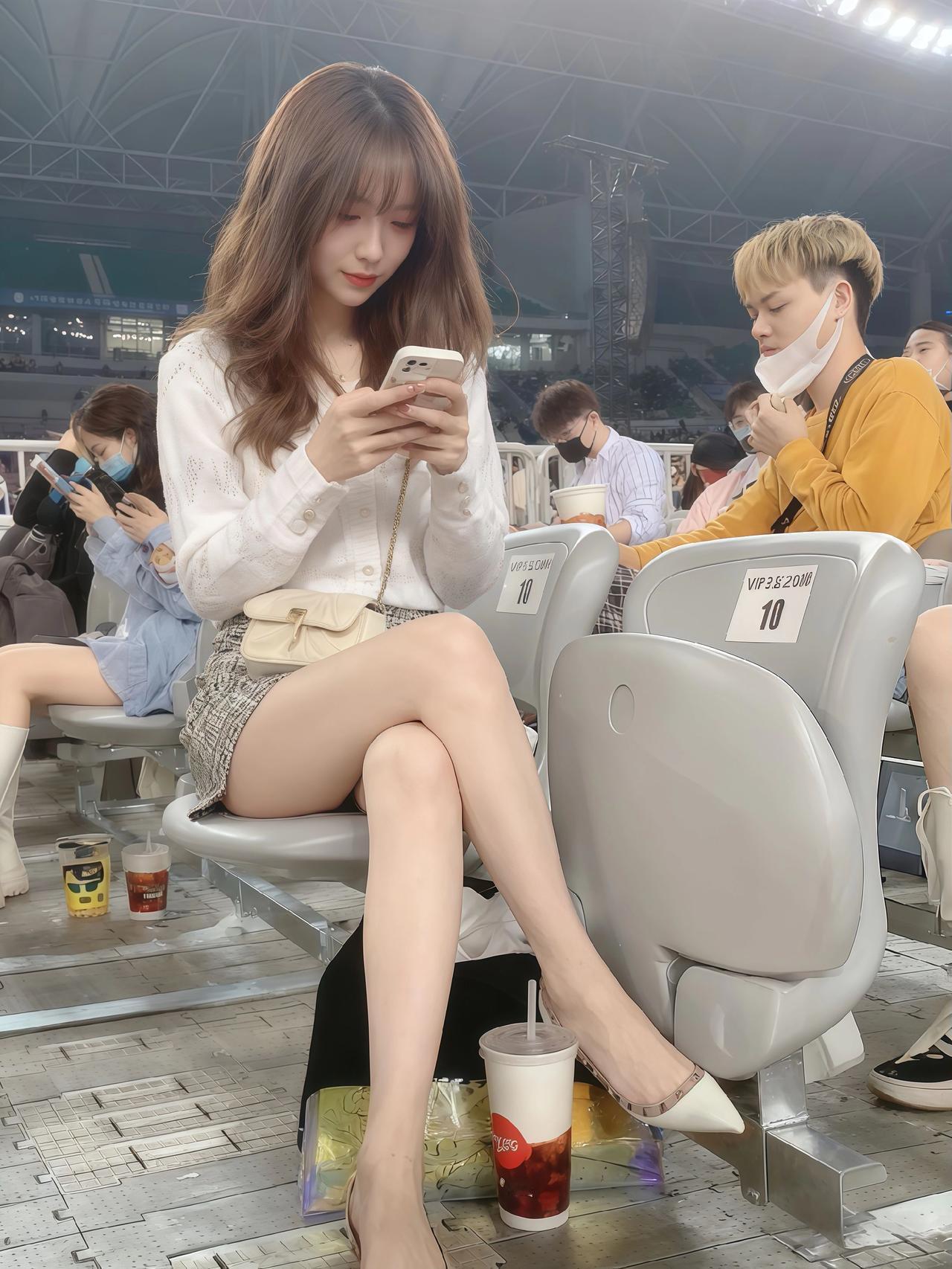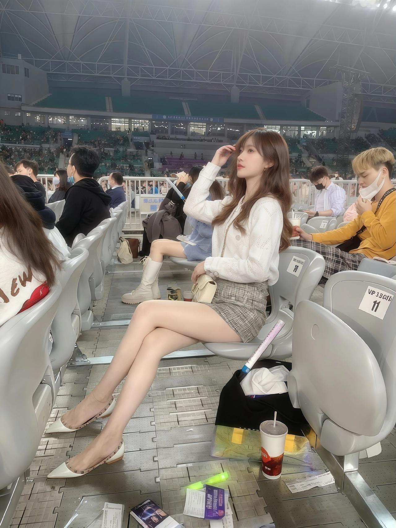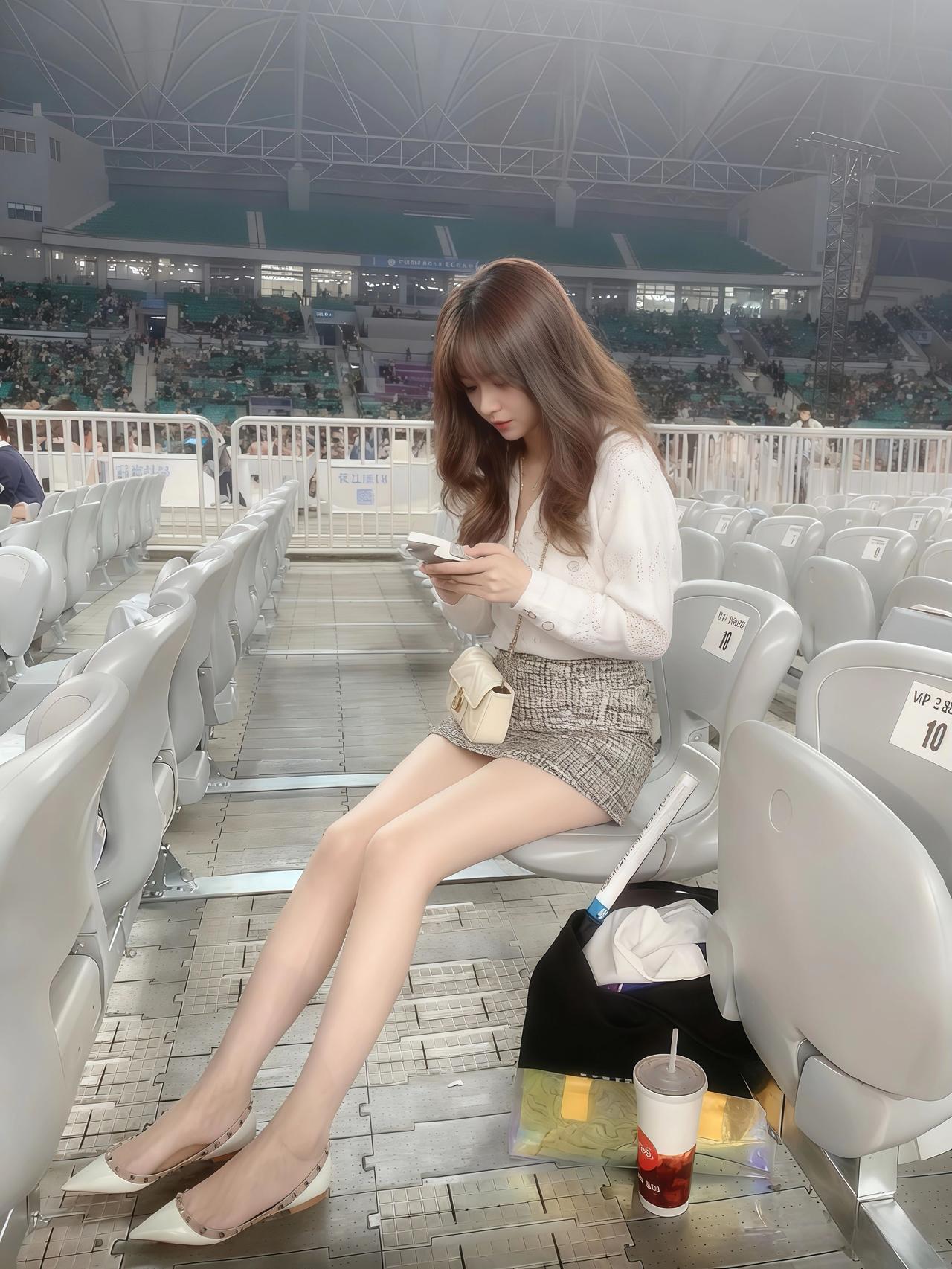 在体育场看比赛,享受阳光和美食的美好时光!🌞🍔🍟