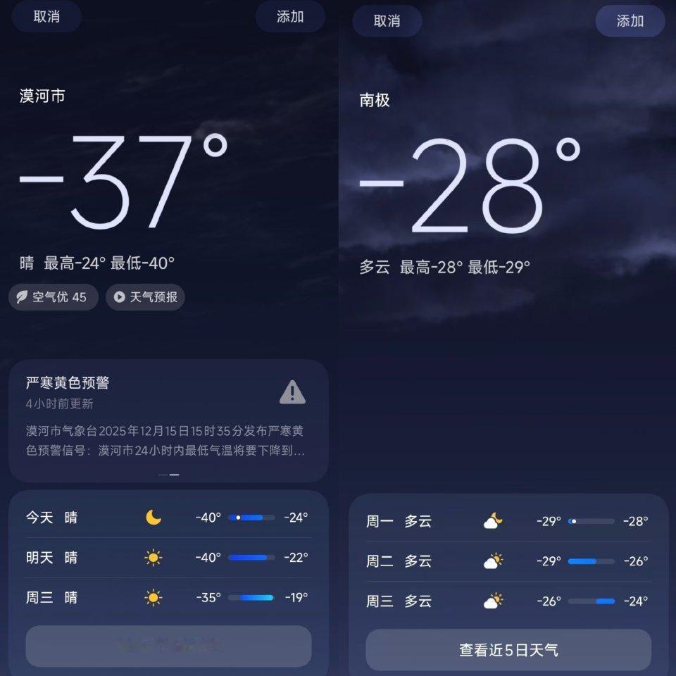 东北这么冷吗? 有去过漠河的朋友告诉我这个是真的吗? 我感觉这场景像是ai生成的,但话说回来东北在这个天气出门是什么样的装备? 像极地考察团一样穿波司登吗?