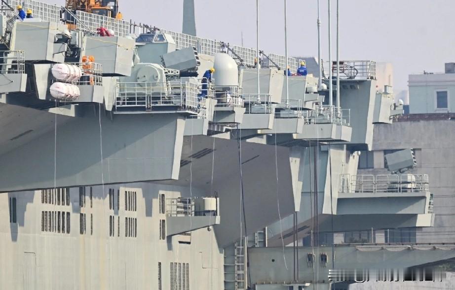 076回到娘家,整备完就能弹无人了 2025年12月,国产076两攻回船厂整备,很快就能解锁新技能。双舰岛一层管航海、二层管航空调度,分工明确,舰上综合射频桅杆技术成熟,红旗10近防导弹能拦亚音速、超音速甚至高超音速目标,防护拉满。 左舷外飘甲板的舷窗位置就是电磁弹射控制站,这可是弹射无人机的关键。 现在舰艇在船厂做最后调试,完事就能正式开展弹射作业。 PS:盾上的两个小揪揪看着真喜庆!!