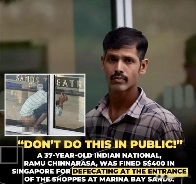 三哥在商场拉屎被罚款 今天晚上,新加坡警方针对一名37岁印度男子开出天价罚单,该男子由于在吉隆坡滨海湾金沙商场大堂一侧当众大号被处罚金500新元(2700RMB)。该男子行为令管理处经理也哭笑不得,经理在受访时表示商场里面就设有厕所,但是不明白该男子为什么就选择在大堂就地如厕,目前已经安排清洁干净。希望更多外国游客注意个人卫生,在新加坡公共场合乱吐口水和随地排便都会被处以罚款,请不要做出错误示范。