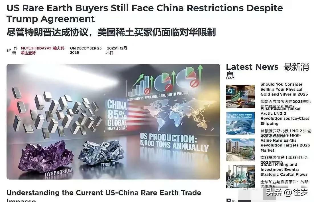 美国被中国这一招搞傻眼了!美媒在12月24、25日广泛报道,尽管中国与特朗普政府在2025年10月底达成稀土贸易协议,但中国仍持续限制对美出口永磁体等产品所需的关键稀土原材料。 很多人不知道,稀土被称为“工业维生素”,尤其是镝、铽这些中重稀土,是高性能永磁体的核心原料。美国70%的稀土进口都来自中国,而F-35战机的雷达、新能源汽车的电机,全靠这些材料撑着 。中国一限制,美国相关产业链直接卡了壳。 中国的底气不是凭空来的。全球稀土氧化物储量里,中国占了近一半达4400万吨,美国才190万吨,连零头都不够。2024年全球39万吨稀土产量,中国独占27万吨,是美国的6倍之多。更关键的是分离技术,全球90%的产能都在中国,美国想复制都难。 美国不是没挣扎过。特朗普政府搞了“大而美”法案,砸1000亿美元扶持关键矿产,还给本土企业MP材料公司发1.5亿美元贷款建加工厂。可稀土项目从审批到投产要近29年,等美国产能起来,市场早变天了 。 盟友也靠不住。美国拉着澳大利亚、加拿大搞“关键矿产联盟”,日本倒是从澳大利亚进口了重稀土,可价格比中国货高不少,成本压力直接压垮不少企业 。这些国家嘴上喊着合作,实则都不想放弃中国市场,联盟根本拧不成一股绳。 中国的限制不是不讲信用,而是稀土是不可再生资源。2025年4月就对7类中重稀土实施出口管制,既为了环保,也是反制美国的贸易打压。反观美国,之前在芯片领域卡中国脖子,现在轮到自己被牵制,纯属自食其果。 美国企业更是愁眉不展。特斯拉等车企的永磁体库存只够维持两三个月,铽价已暴涨24%达每公斤933美元。军工企业更慌,F-35战机生产线因缺原料面临瘫痪风险,这可是美国的王牌装备 。 当然,中国也不是高枕无忧。西方在加速供应链多元化,预计2028年中国分离产能份额可能降至75%。但短期来看,全产业链优势和技术壁垒,让美国很难摆脱对中国稀土的依赖。 这背后是大国战略的博弈,中国用稀土这张牌,打破了美国的贸易霸权幻想。不是我们要主动施压,而是面对打压,必须守住战略资源的底线。 各位读者你们怎么看?欢迎在评论区讨论。