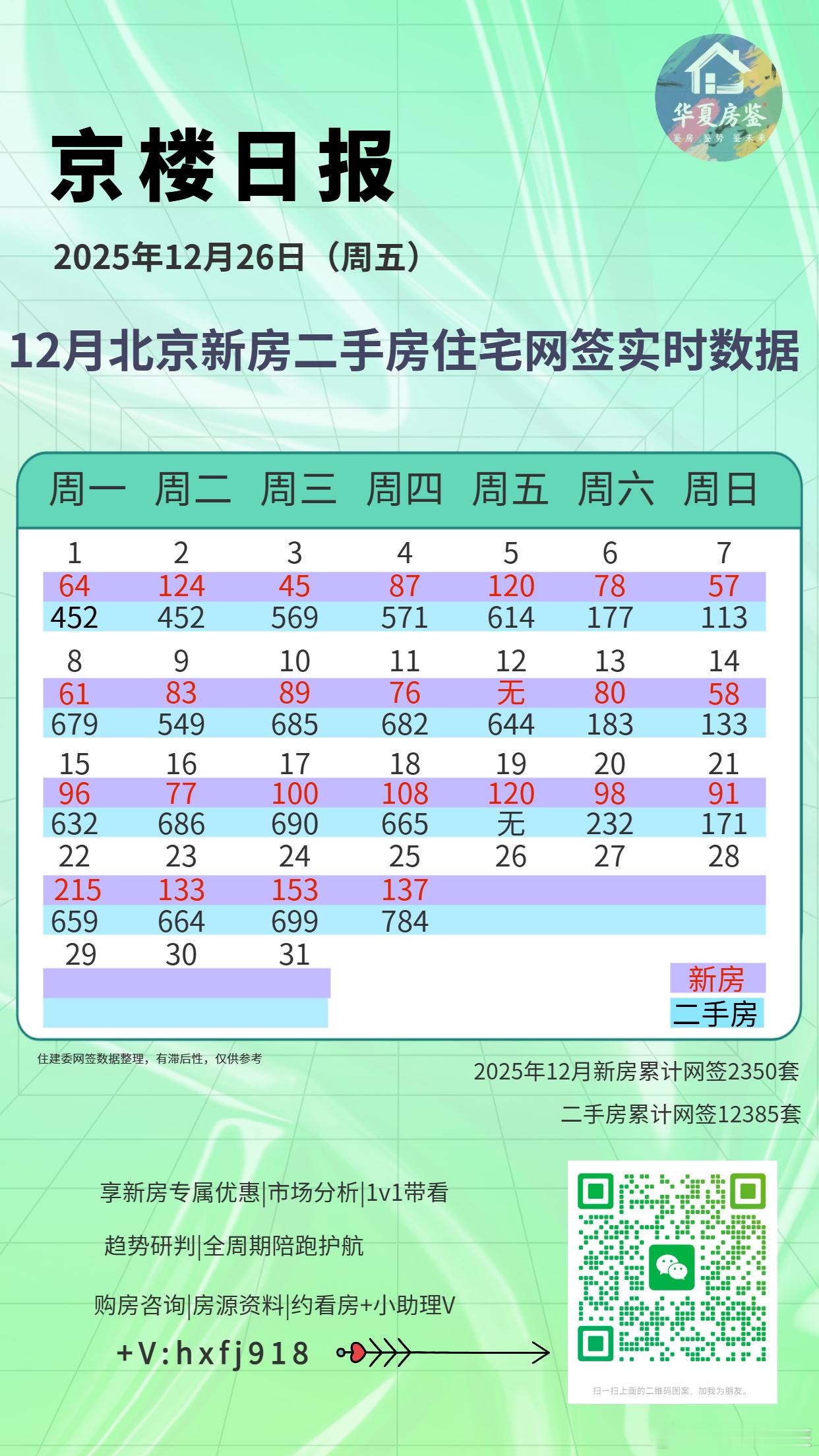 2025年12月24日:北京市期房住宅网签103套,现房住宅网签50套,二手房住宅网签699套。 2025年12月25日:北京市期房住宅网签88套,现房住宅网签49套,二手房住宅网签784套。北京楼市北京房产