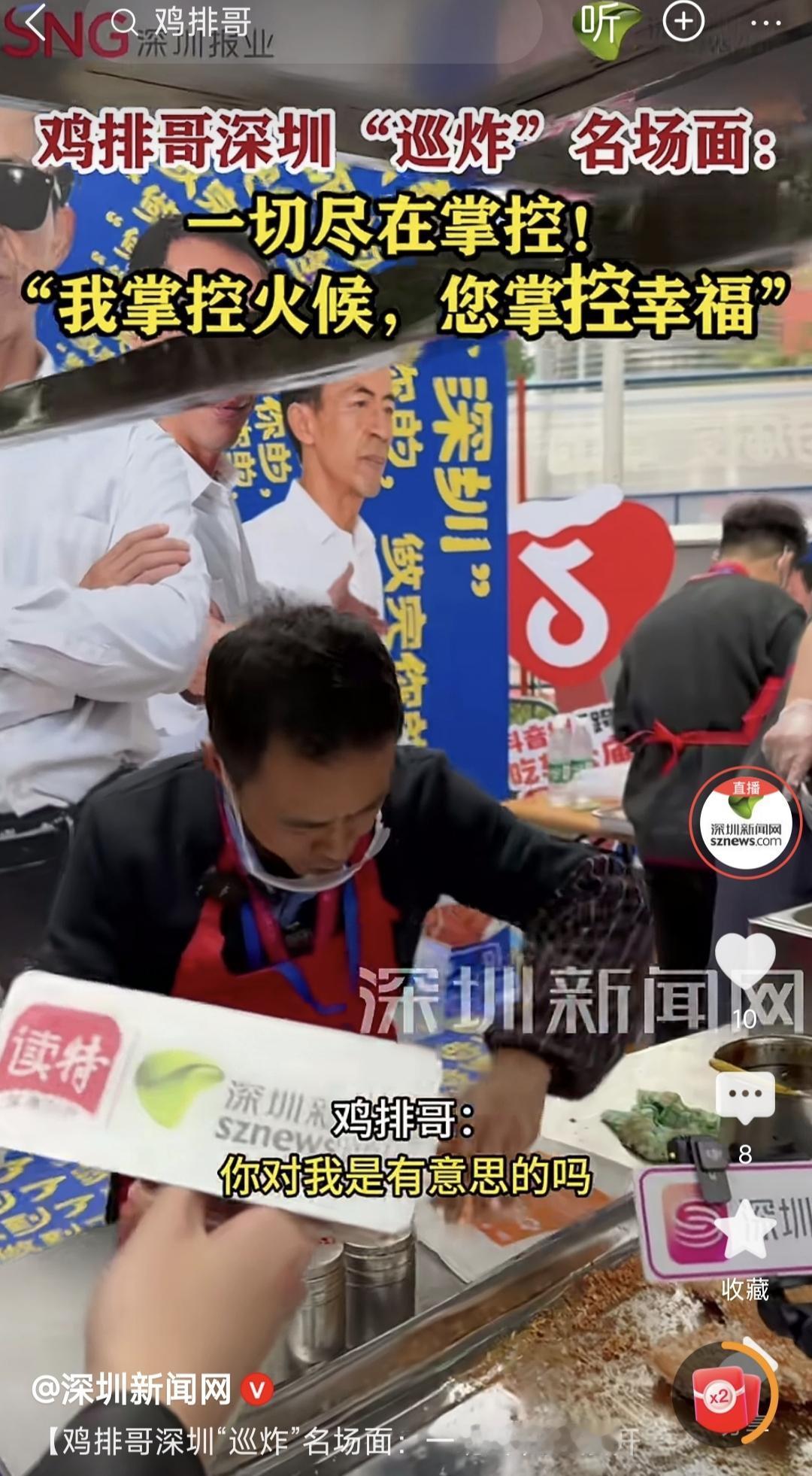 不服还真的不行,景德镇鸡排哥“巡炸”到深圳,从一个“镇”到另一个“圳”,深圳的粉丝还挺给力,排队排得老长,深圳本地几家重量级媒体都去采访了,流量为王的时代,一个人可以带来一波流量。不过摆摊摆到这个地步,也真的是可以的了。我个人觉得只要鸡排哥的鸡排品质好,人家愿意去吃,倒也没什么可非议的,这也算勤劳致富。至于背后是否有资本的推动,则不得而知。当然也有人说这个社会病了,其实这个时代,可能要不断的推出一些流量明星,从郭有才到鸡排哥,大同小异,也许下一个就会是你。目前终究还是一个流量为王的时代,当然,这样的现象一直延续,从另外一个角度看,也多少让人忧虑。