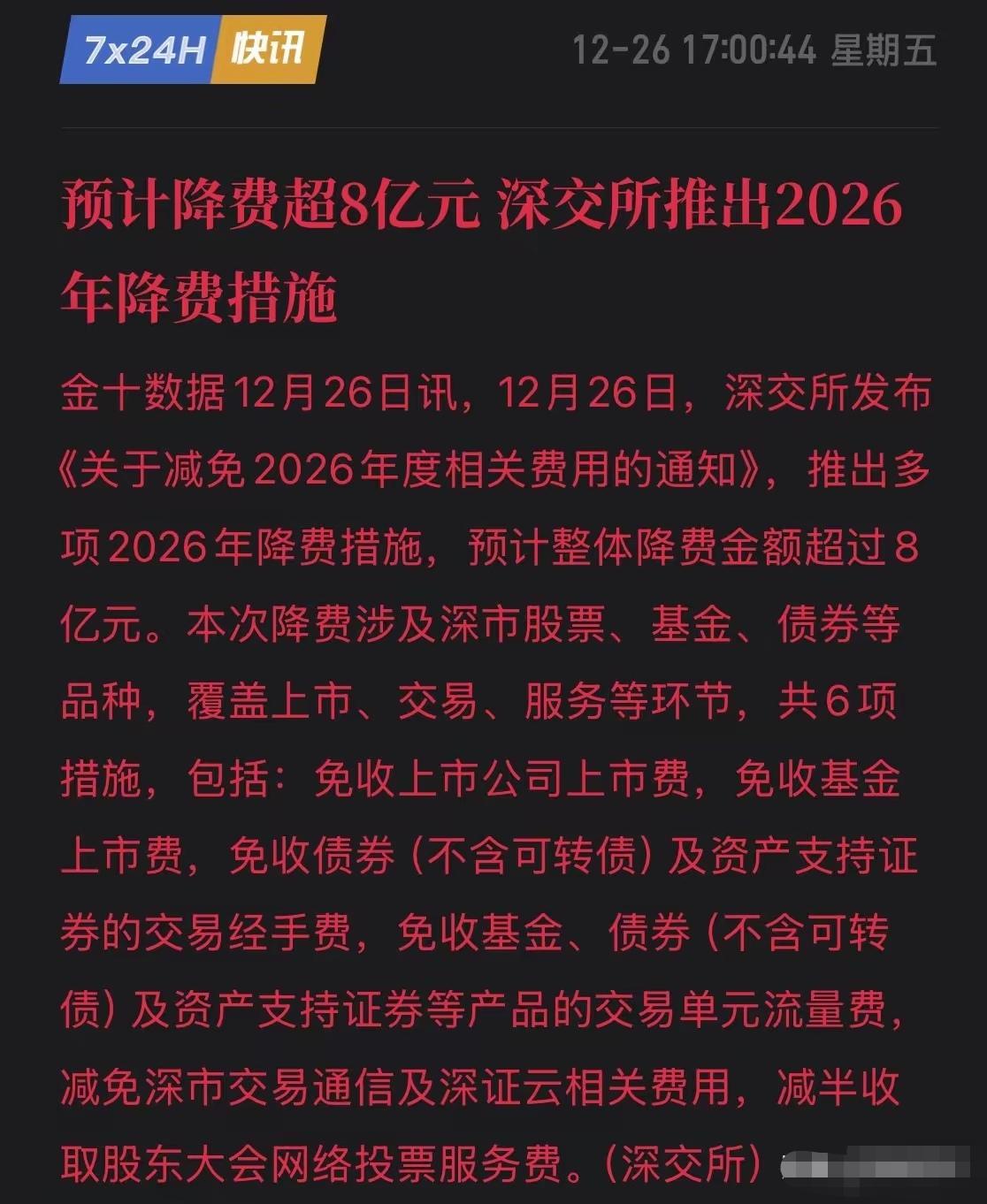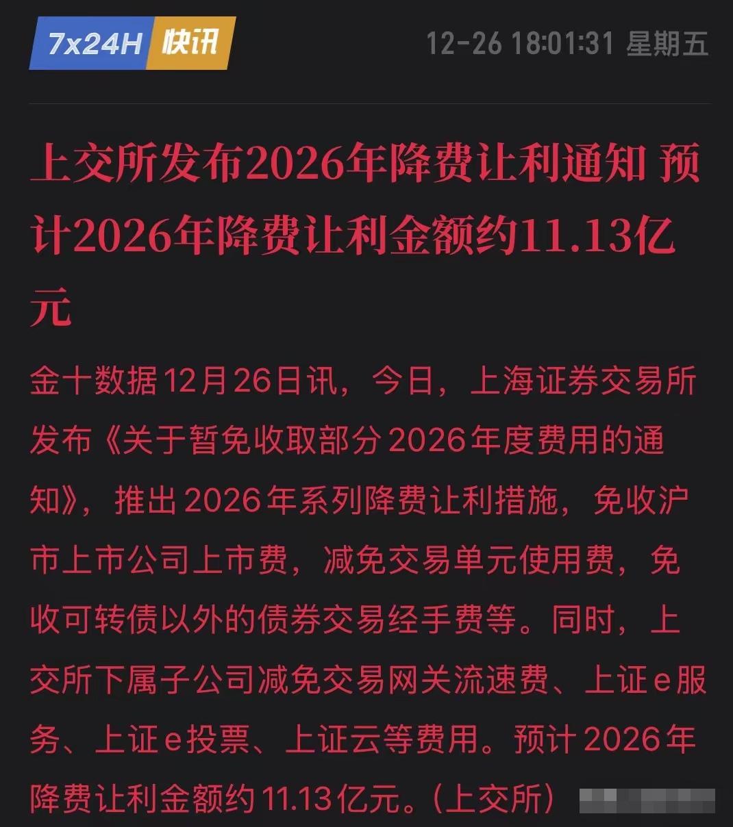 这算重大利好吗? 盘后沪深交易所都发布了2026年相关降费的政策消息。都说是重大利好,但根本没提到跟股民与交易有关的东西。