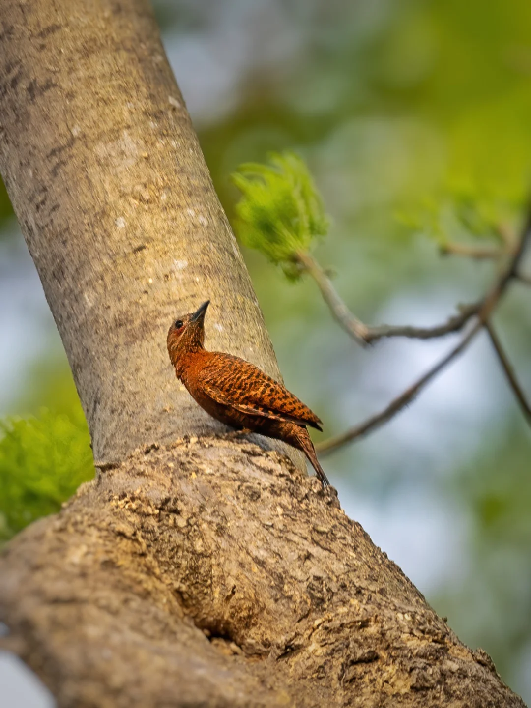 树上趴着一只小小栗啄木鸟