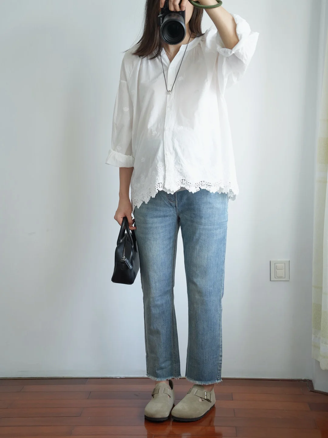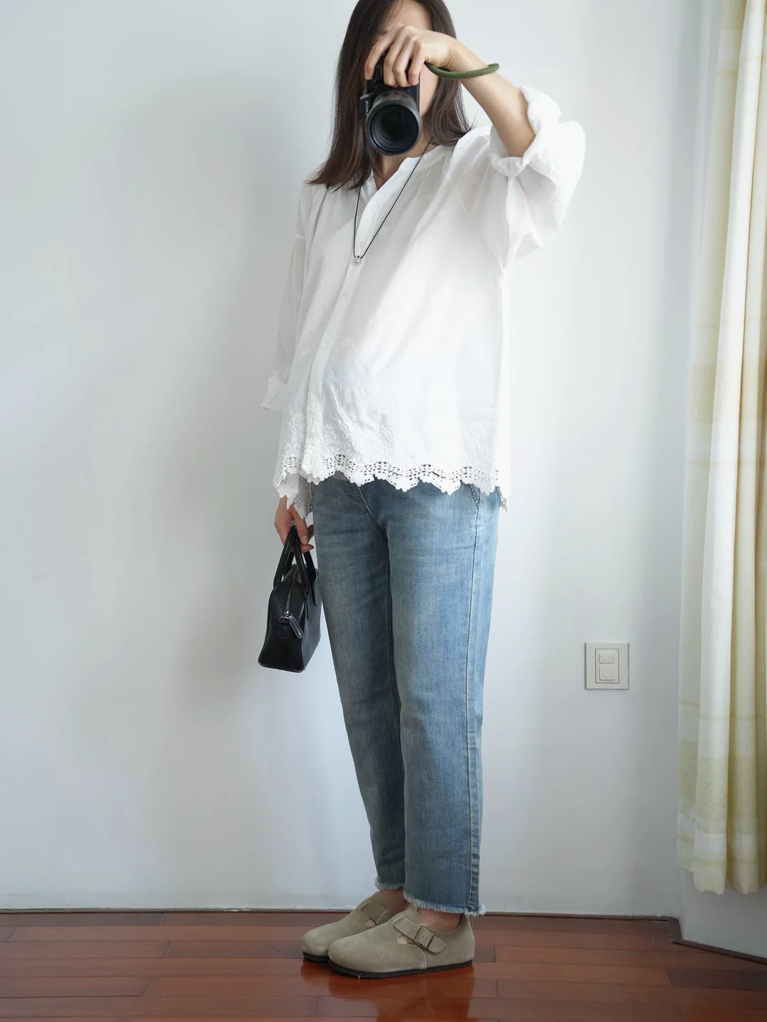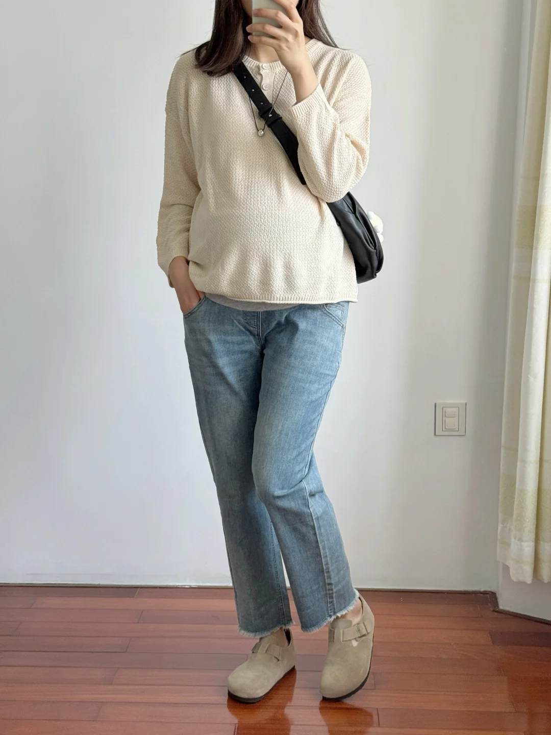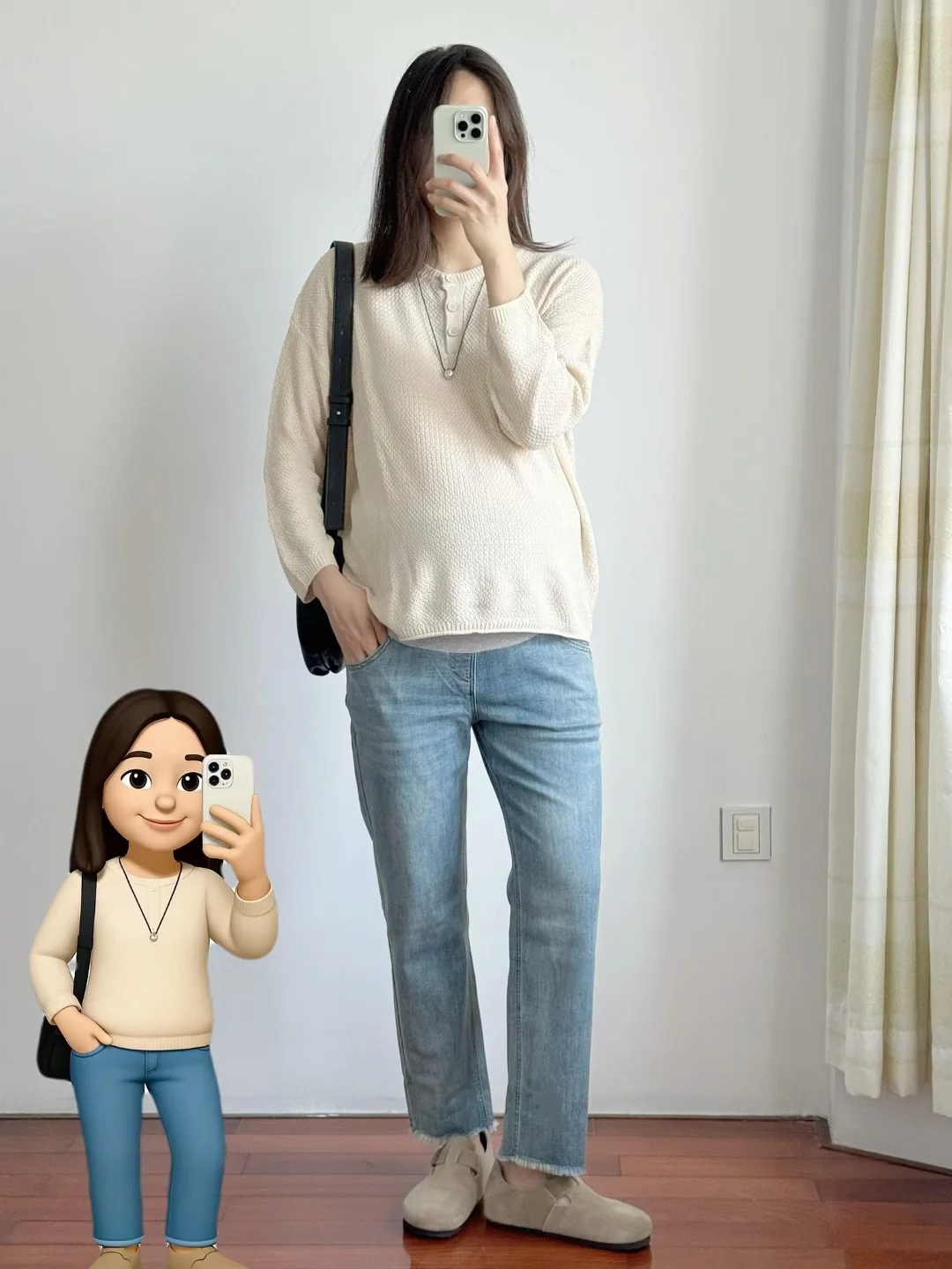 孕34周啦 上周也做了首次胎监 数据非常不错 是个爱运动的宝宝 每天在肚子里练习踢腿动作 稳住双顶径呀宝贝 坐标广东 特别期待凉爽的秋天 虽然短暂 但还是很期待穿着薄长袖出门 之后就带着一个小挂件出门啦 分享4件非常满意的初秋单品 ~小挎包 入了好几年依然很喜欢的小包 能斜挎又手提 怎么背都好看 关键还很能装东西 小小一个出门必须品足够了 就很喜欢这种简约的长期主义 ~直筒牛仔裤 谁说孕期不能穿牛仔裤 秋天就狠狠穿起来! 托腹设计可调节腰围 包裹孕肚 显瘦又显直腿 产后也能继续穿 怎么搭配怎么好看 ~镂空花纹小衬衫 薄款衬衫很适合初秋 不热不凉的季节 小设计比如蝙蝠袖 底部是镂空花纹设计 简约又耐看 怎么搭都舒适好看 ~勃肯鞋 初秋偏爱勃肯 一整个色系温柔住 一脚蹬方便 孕期水肿jio也能穿 买大一码即可 包跟设计通勤方便 其实半包我也想拥有 入了喜欢的单品心情舒畅 孕期也能穿得舒适又好看