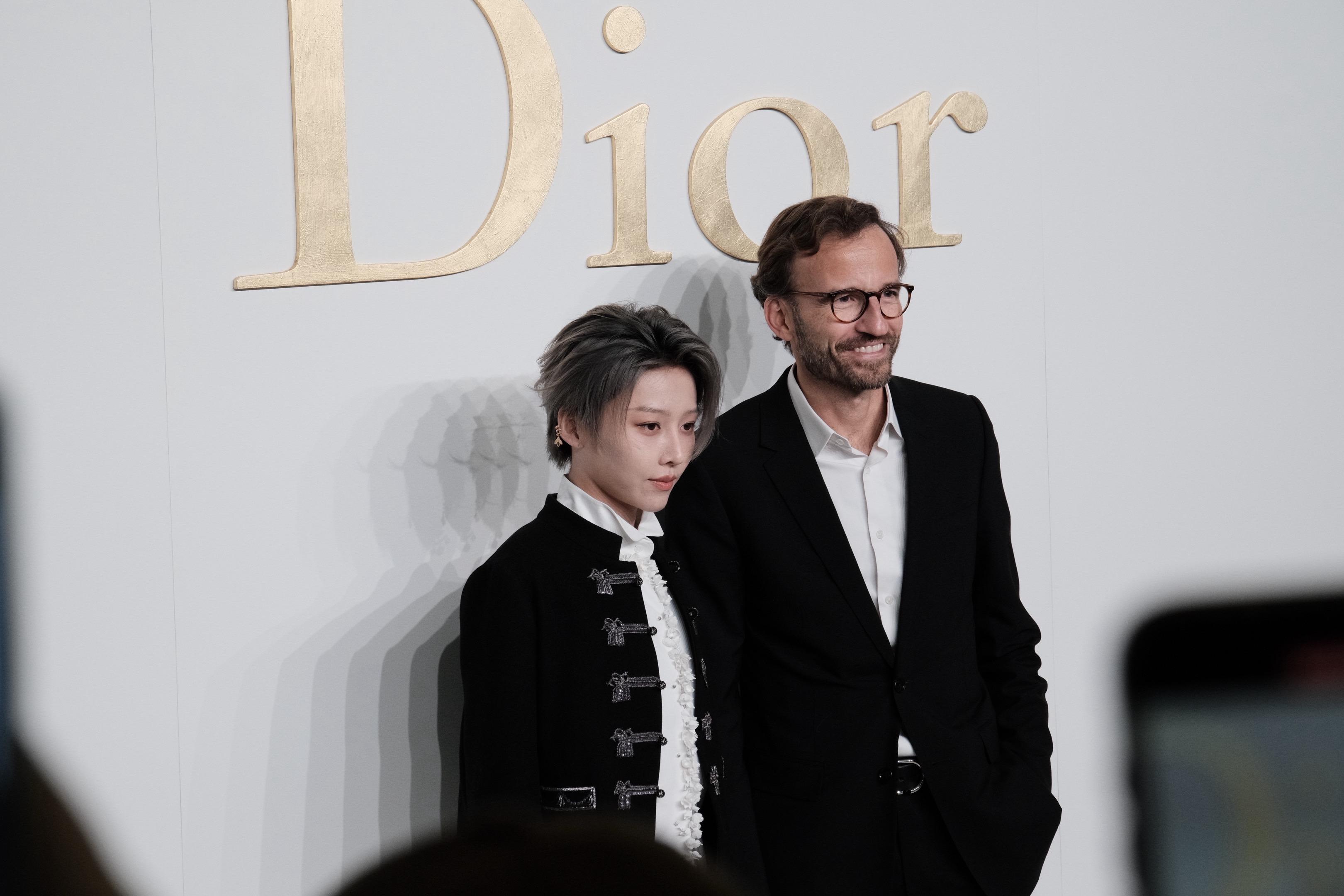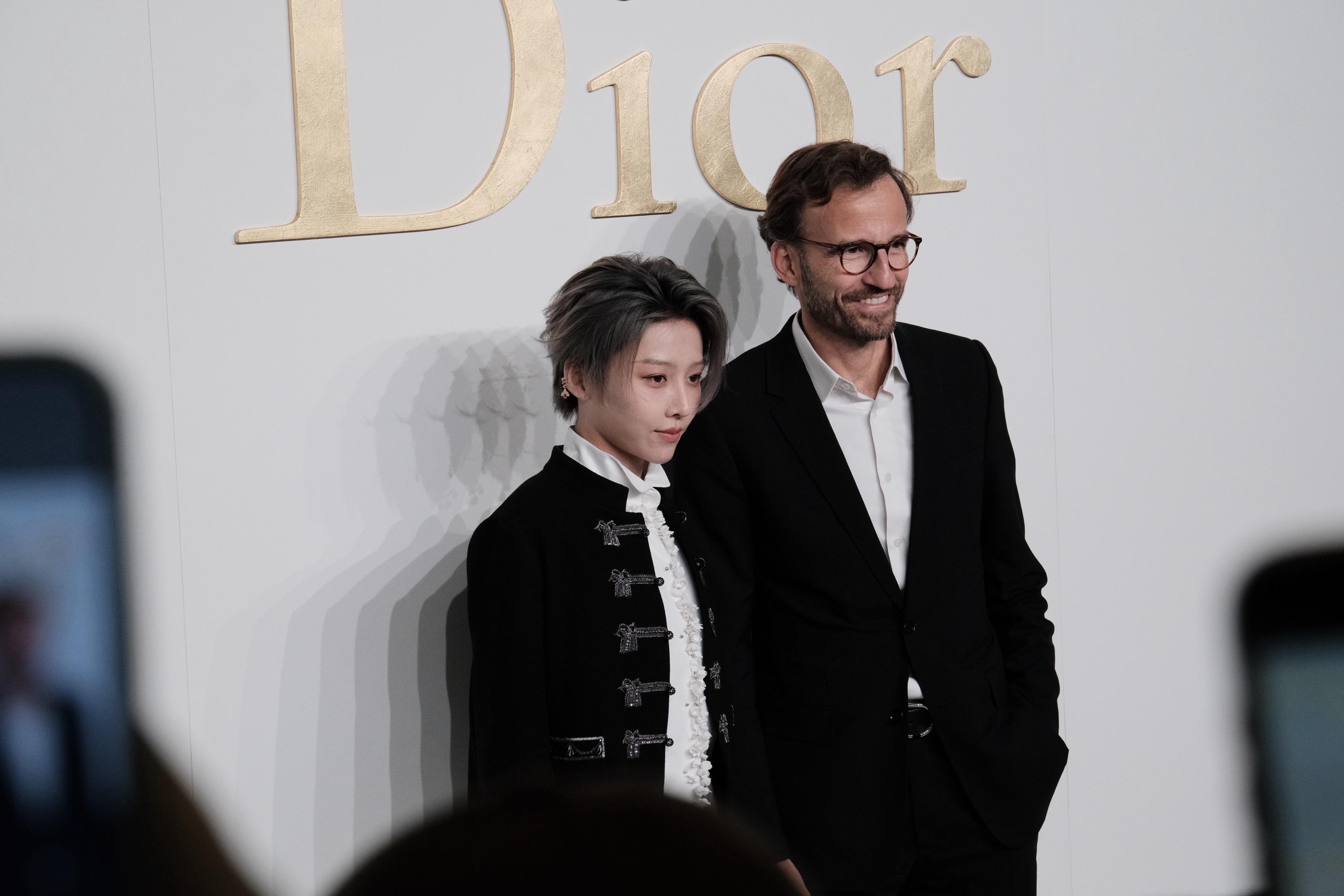 弯腰的那一瞬,全场焦点都在你身上。没想到女神眼纹也这么重,都笑出褶子来了。裙子很