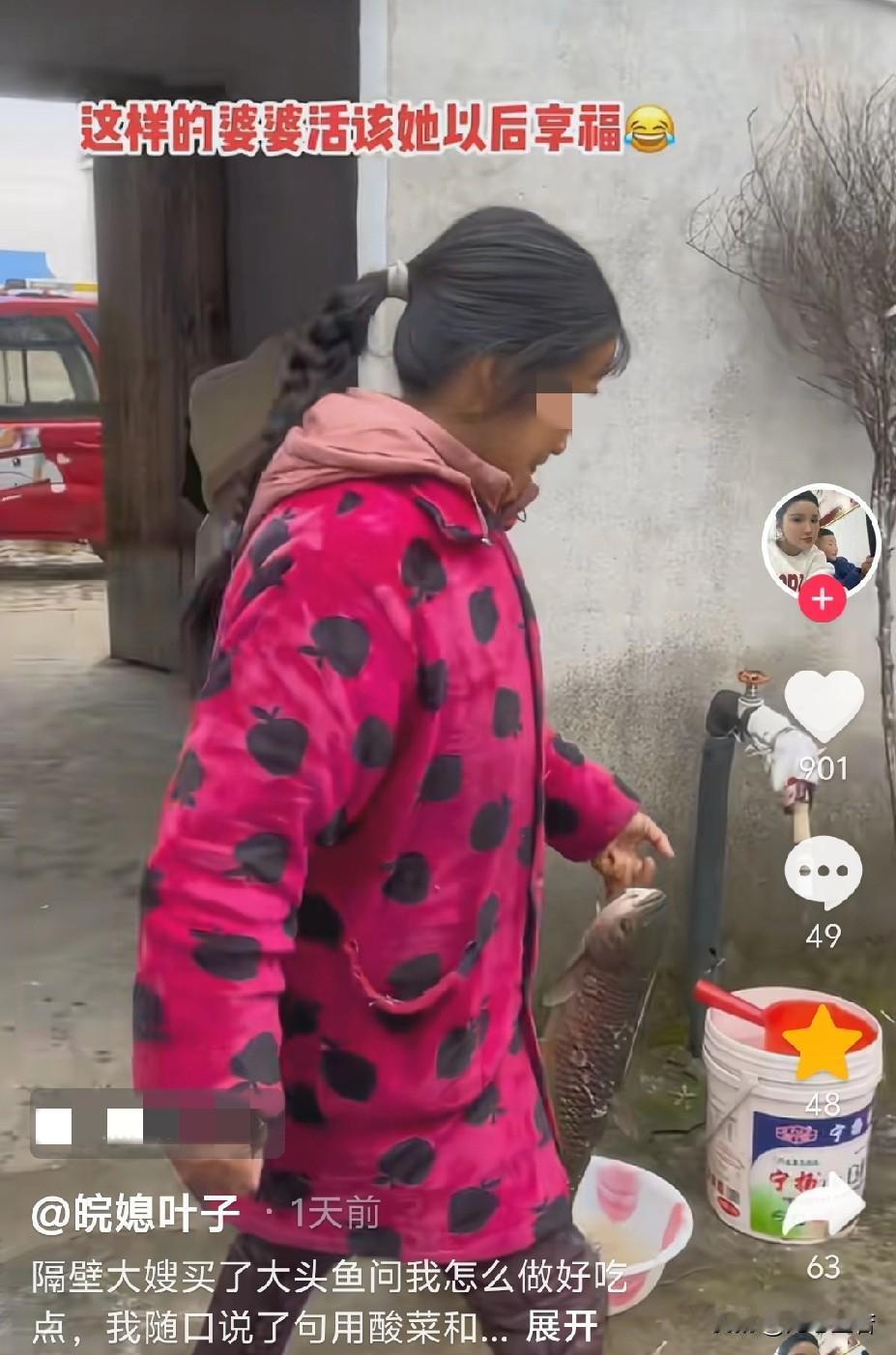 近日,安徽淮南,一名女子在门口闲坐,隔壁大婶买了一条大头鱼,问她怎么做好吃点。女子随口说了句用酸菜和豆腐炖了老好吃了。没想到,旁边的婆婆听见了,默默地记在心里。 第二天一大早,女子刚起床,就看见婆婆提着一条大头鱼回来了。女子好奇地问婆婆,今个咋想买这么大条鱼回来呢? 婆婆笑着回答说,你昨天不是给你大婶说,那个大头鱼炖豆腐好吃嘛!今天刚好看村里有人卖,还是自家塘里养的肯定好吃,豆腐我也叫别人帮忙买了,你等着我马上把鱼打理干净了,等一下我们也吃大鱼炖豆腐,这么大一条让你吃个够。 据了解,女子是贵州远嫁到安徽的媳妇,婆婆也是远嫁到安徽的外地人。女子听了婆婆的话幸福感爆棚,她表示,这就是我的公婆,说了你们可能不相信,在这个家里,她们只要听到我说啥好吃,只要在她们的能力范围之内,立马就安排。有时候连我老公都会吃醋,还开玩笑说,不知道还以为他是上门女婿呢! 看了视频,女子的婆婆也太有心了吧!就因为她随口给大婶提了一句大头鱼炖豆腐好吃,转头就把大头鱼和豆腐安排的明明白白,这哪里是买鱼啊,这分明是把女子的话放在心坎上,这种被记挂着的感觉,真的太暖了。 女子能遇到这么疼人的公婆,真的是上辈子修来的福气。很多家庭里婆媳、公媳之间总隔着一层客气,可她家完全不一样,她们把女子当成自家人来疼,能力范围内的喜好都尽力满足,连老公都吃醋,这日子过得也太有烟火气、太幸福了。 其实一家人过日子,最难得的就是这种“你说的话我记着、你喜欢的我安排”的心意。女子公婆的这份好,不是什么惊天动地的大事儿,却藏着最实在的爱,也难怪女子幸福感爆棚,换谁遇到这样的家人,心里都会甜滋滋的。(来源:皖媳叶子)