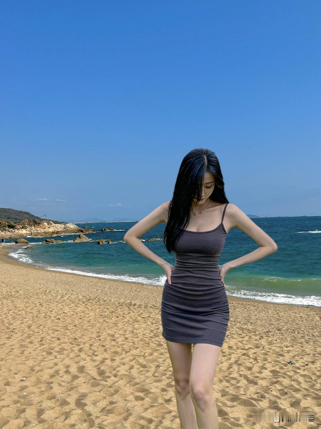 沙滩上的时尚女孩,海风吹拂,美不胜收!🌊👗