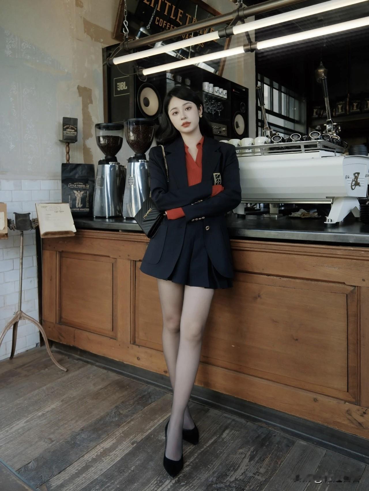 一位美女坐在长椅上,优雅地喝着咖啡。有气质的穿搭如何打造?
