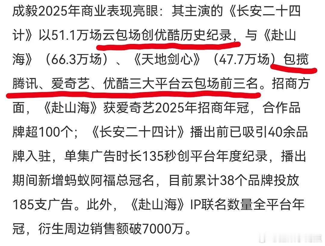 成毅太牛了!《赴山海》《天地剑心》《长安二十四计》三平台史冠!对了,是三平台云包场史冠!