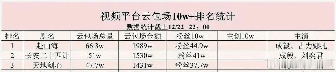 成毅太牛了!《赴山海》《天地剑心》《长安二十四计》三平台史冠!对了,是三平台云包
