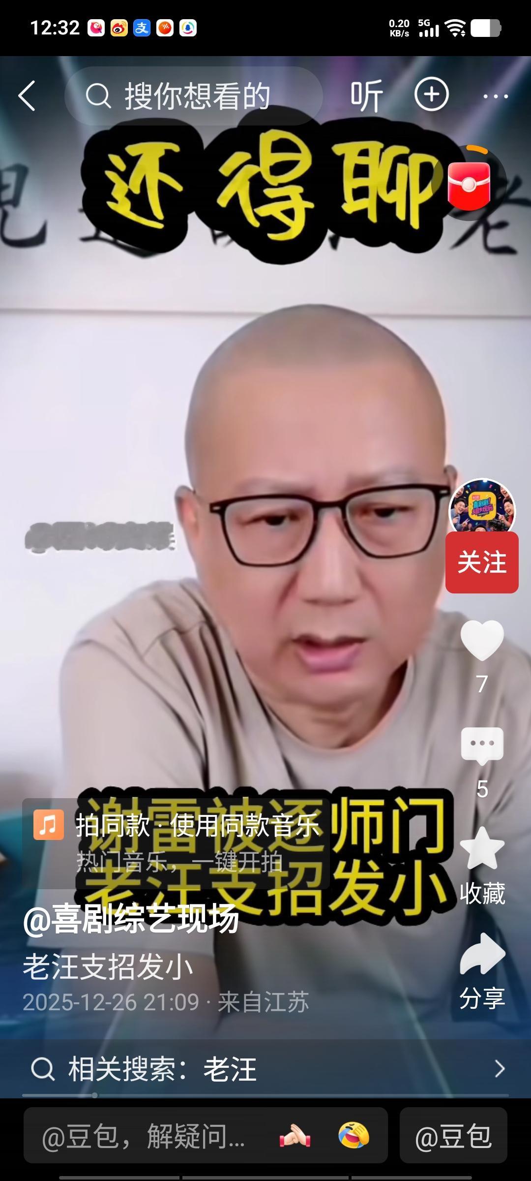 老汪的直播间里,有网友让他给谢雷“划划道”。老汪有些激动地说道,我要是给他划道,那就是立刻开播。老爷们没主意,得受一辈子穷,就四个字——杀伐决断。出来混就得有骨气!既然你在网上玩流量,大家都图个乐子、想看热闹,那你就爆料,把事儿闹得越大越好。况且这个门户对你没啥用,你又不靠这个吃饭。人家都掀桌子了,你还想着捡没碎的盘子?直接开启第二部下集《还嘚聊》。 到目前为止,谢雷还没动静,估计他的智囊团正在研究对策,下一步肯定还会有猛料爆出。既然都不要遮羞布了,那就敞开了聊!谢雷这师拜的,20年钱花了不少,却没半点声响,还落得个被清门的下场,你说他能甘心吗?下一波网络风暴马上就来,都是为了流量、刷存在感,吃瓜群众就看个乐吧!