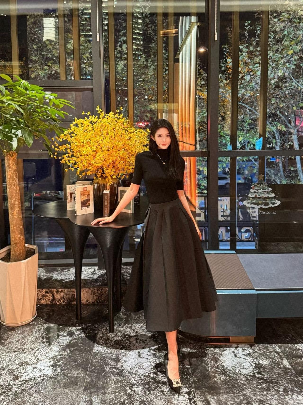 最近万茜在外出的时候搭配的很有潮流时尚气息,真的是又年轻又迷人。万茜里面穿黑