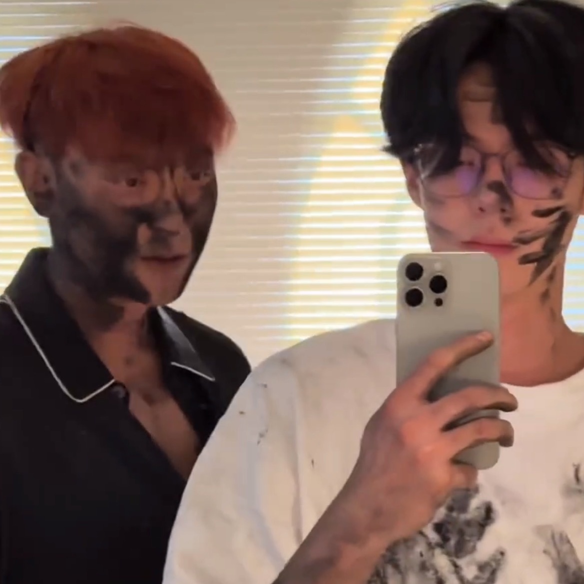 哈哈哈哈哈哈当王鹤棣遇上黄子韬棣棣妈欠打系列 黑煤球造型+1 hhhh孩子挖煤回来了~