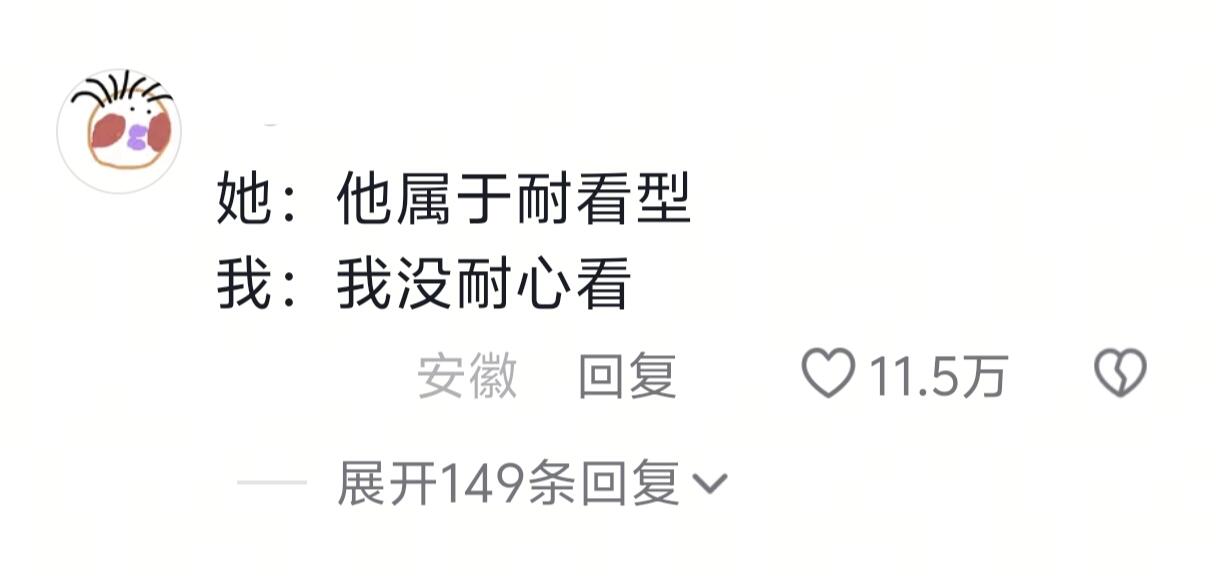 她:他属于耐看型 我:我没耐心看