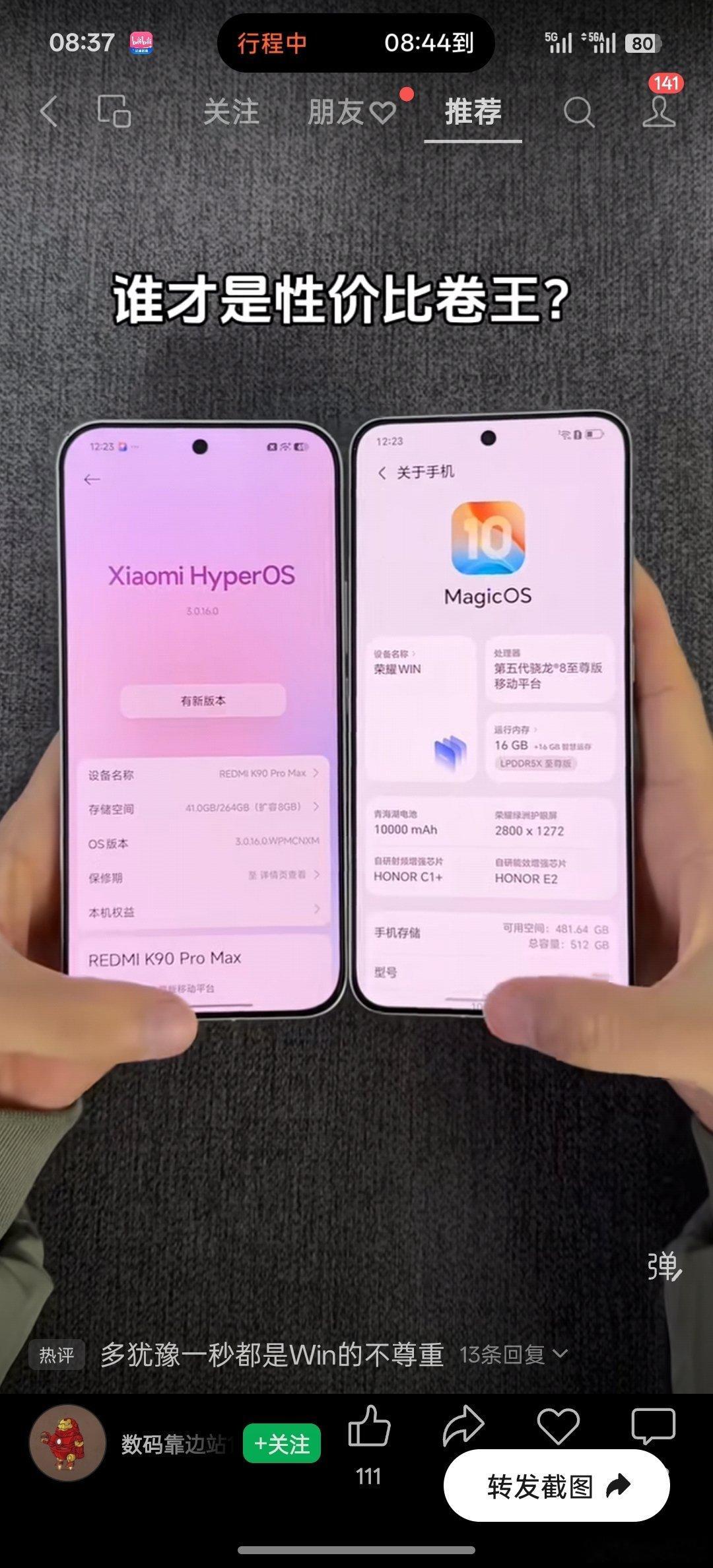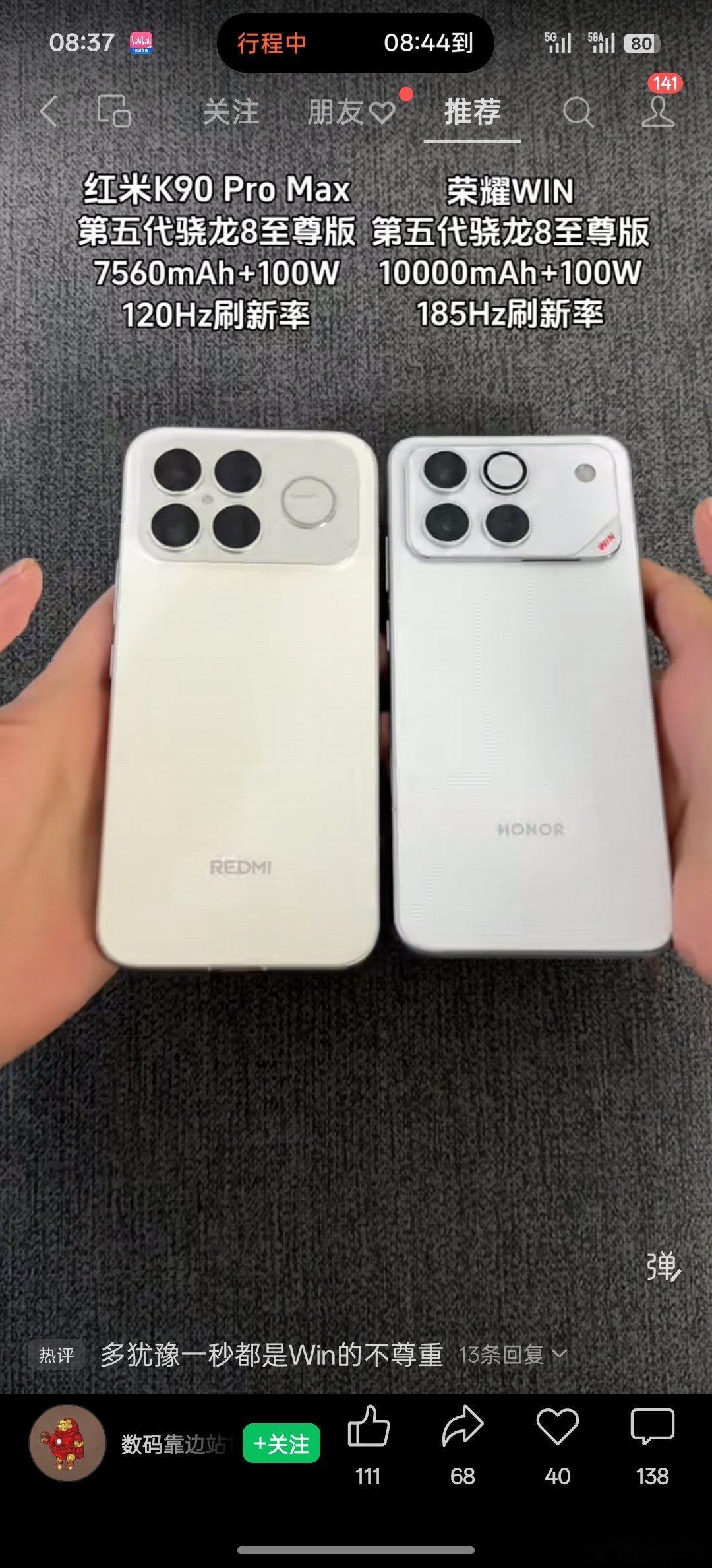 左边是红米K90 Pro Max,右边是荣耀WIN这两款手机长得有点像孪生兄弟经过市场认证都是好设计,那么,你更喜欢哪一个呢?