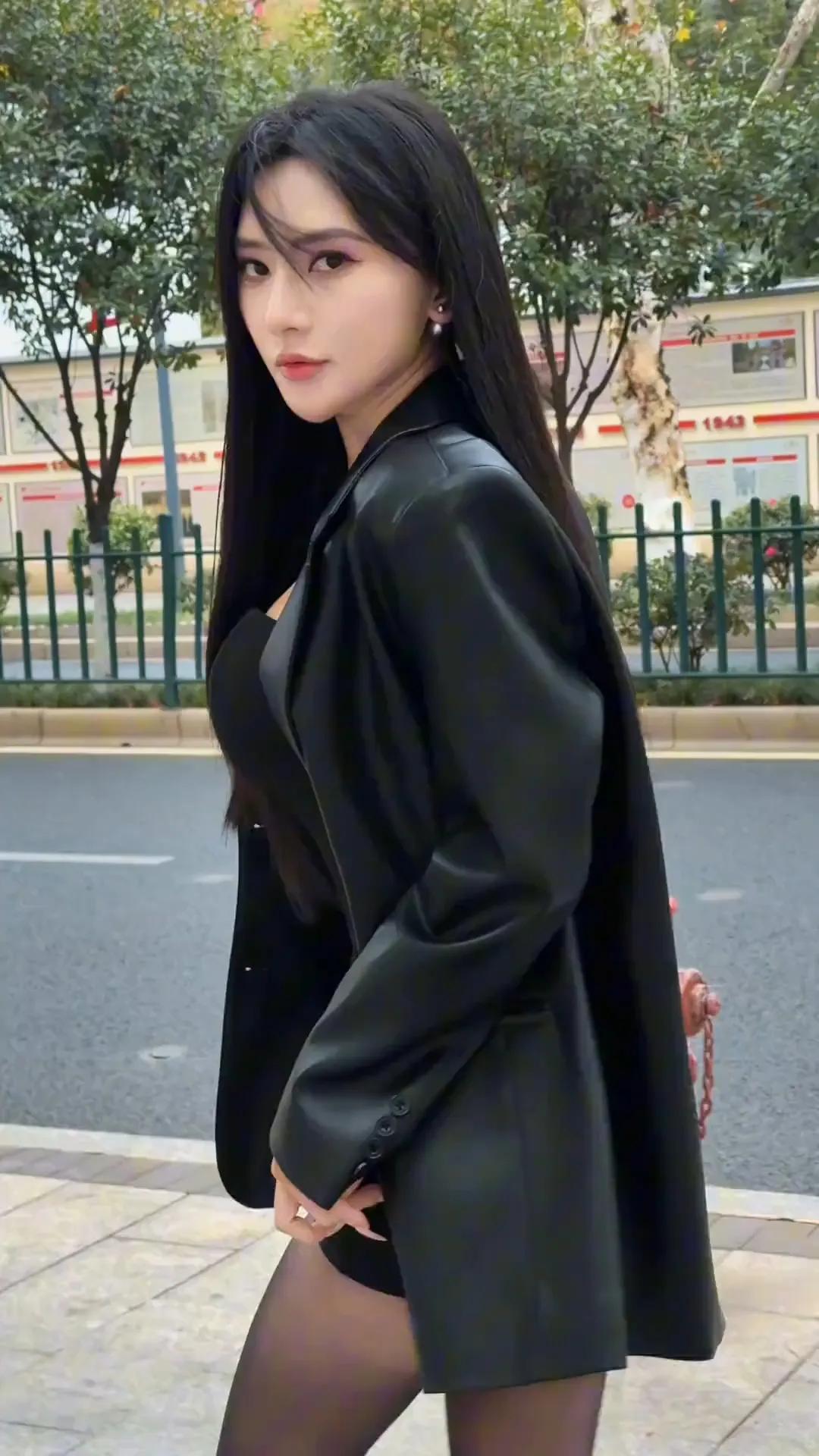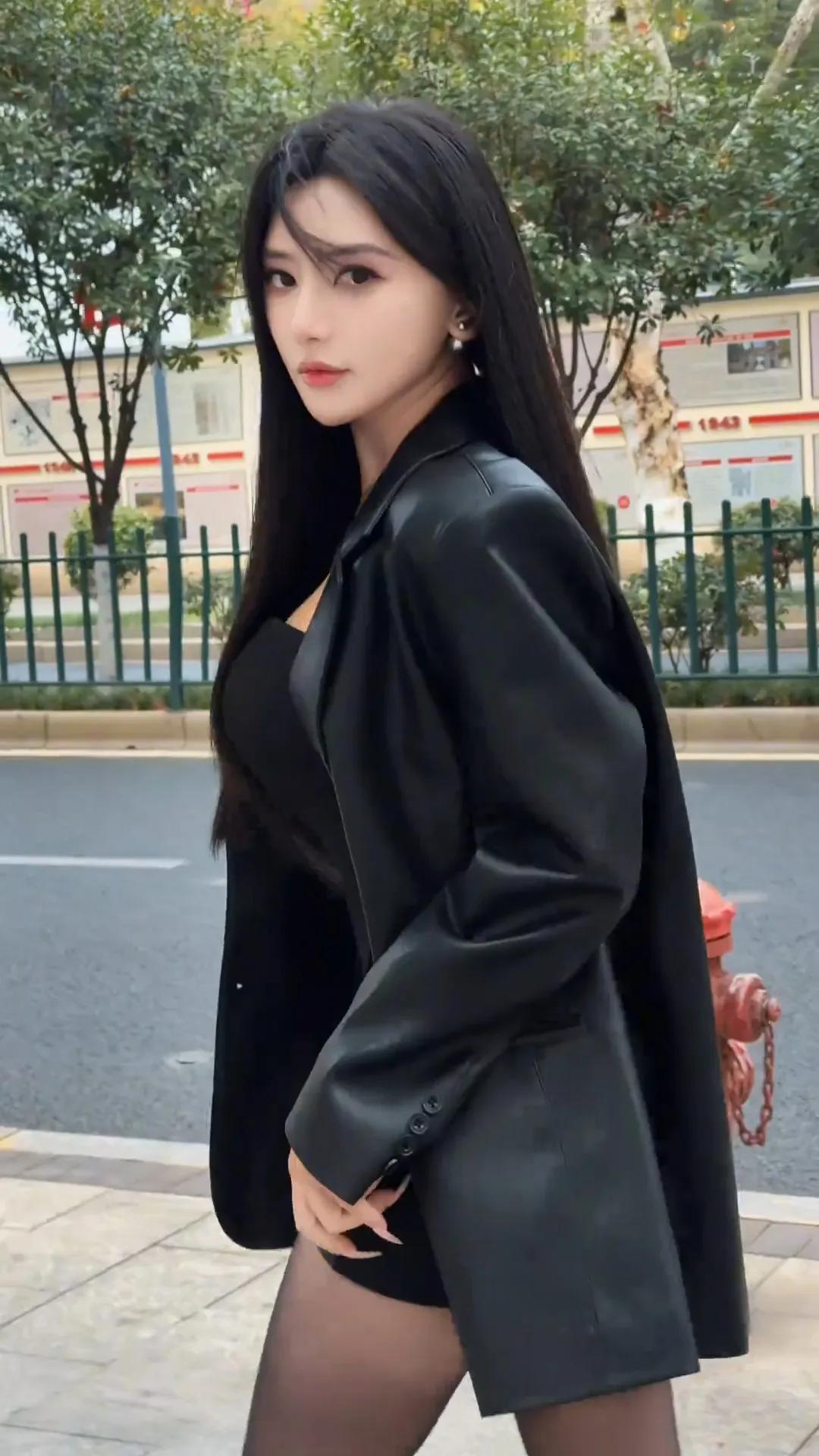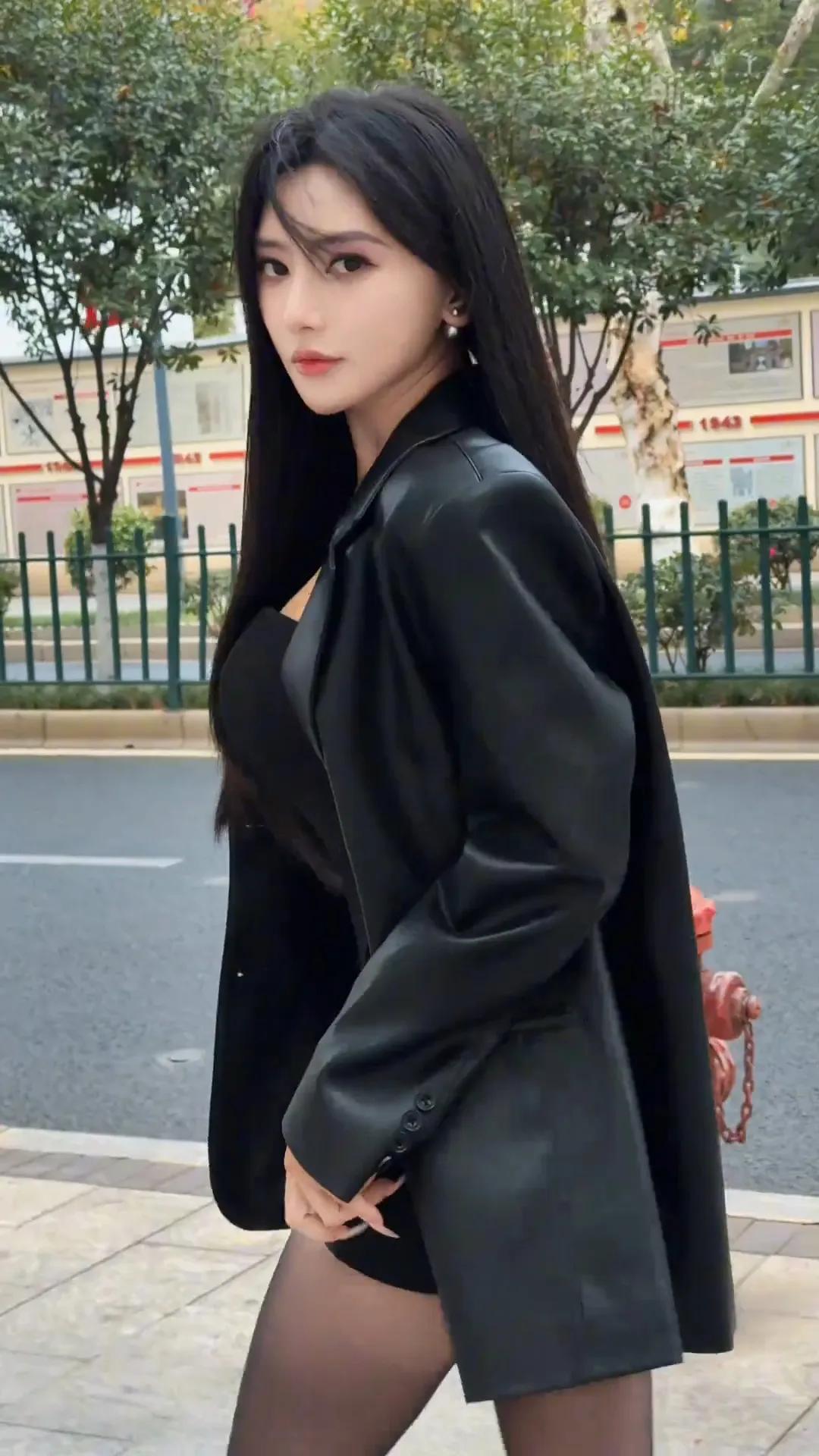 都市酷girl风,黑色皮衣搭配,气场全开!🔥💃