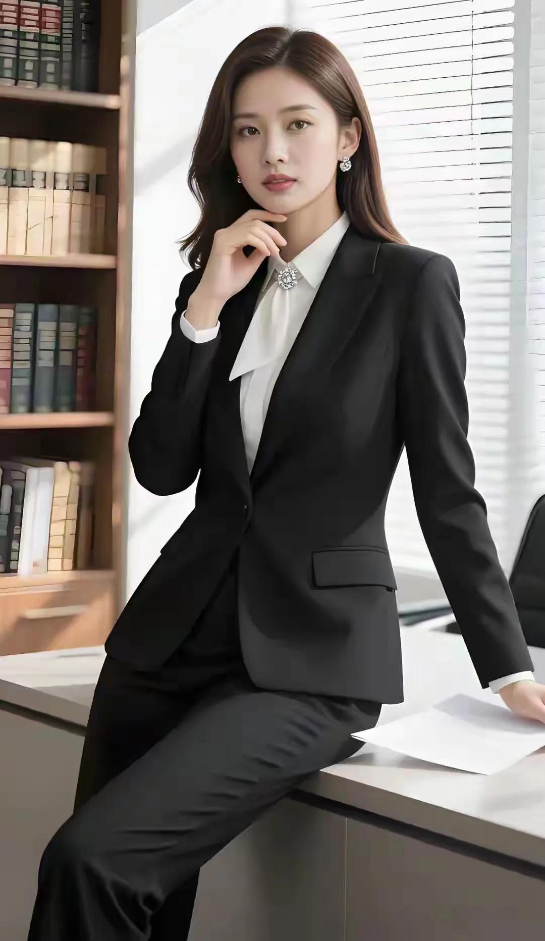 优雅职场风,黑色西装搭配珠宝,尽显女性魅力!