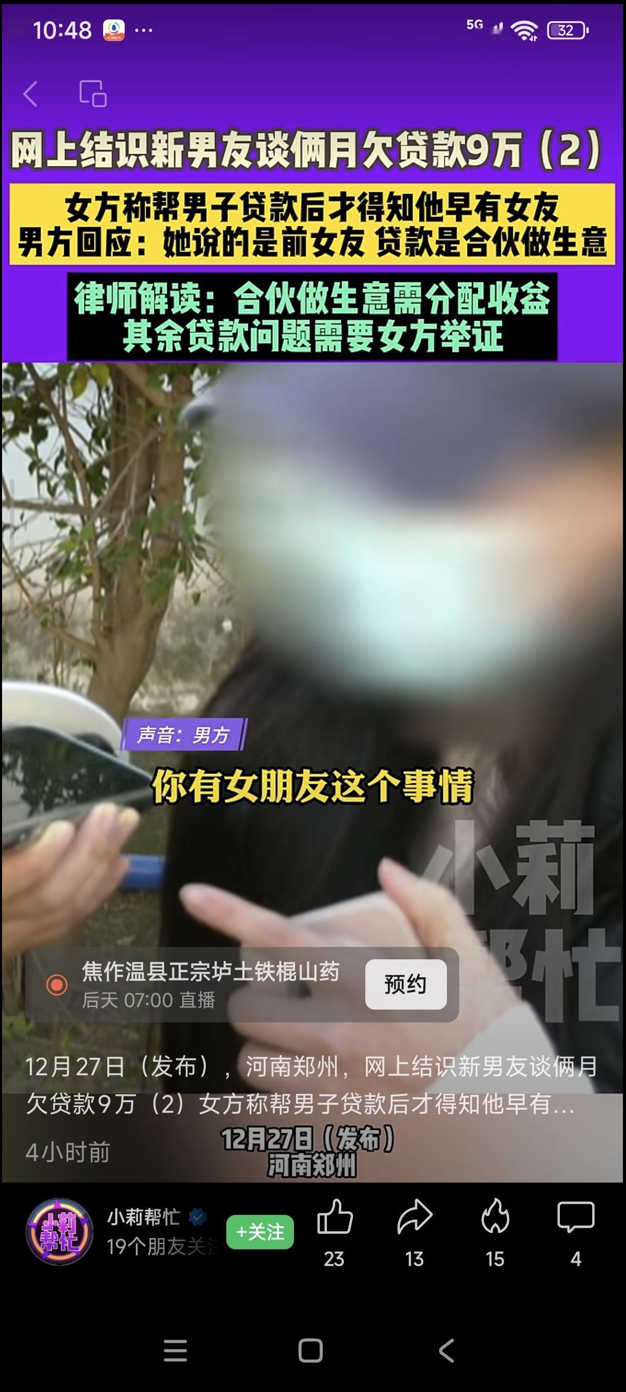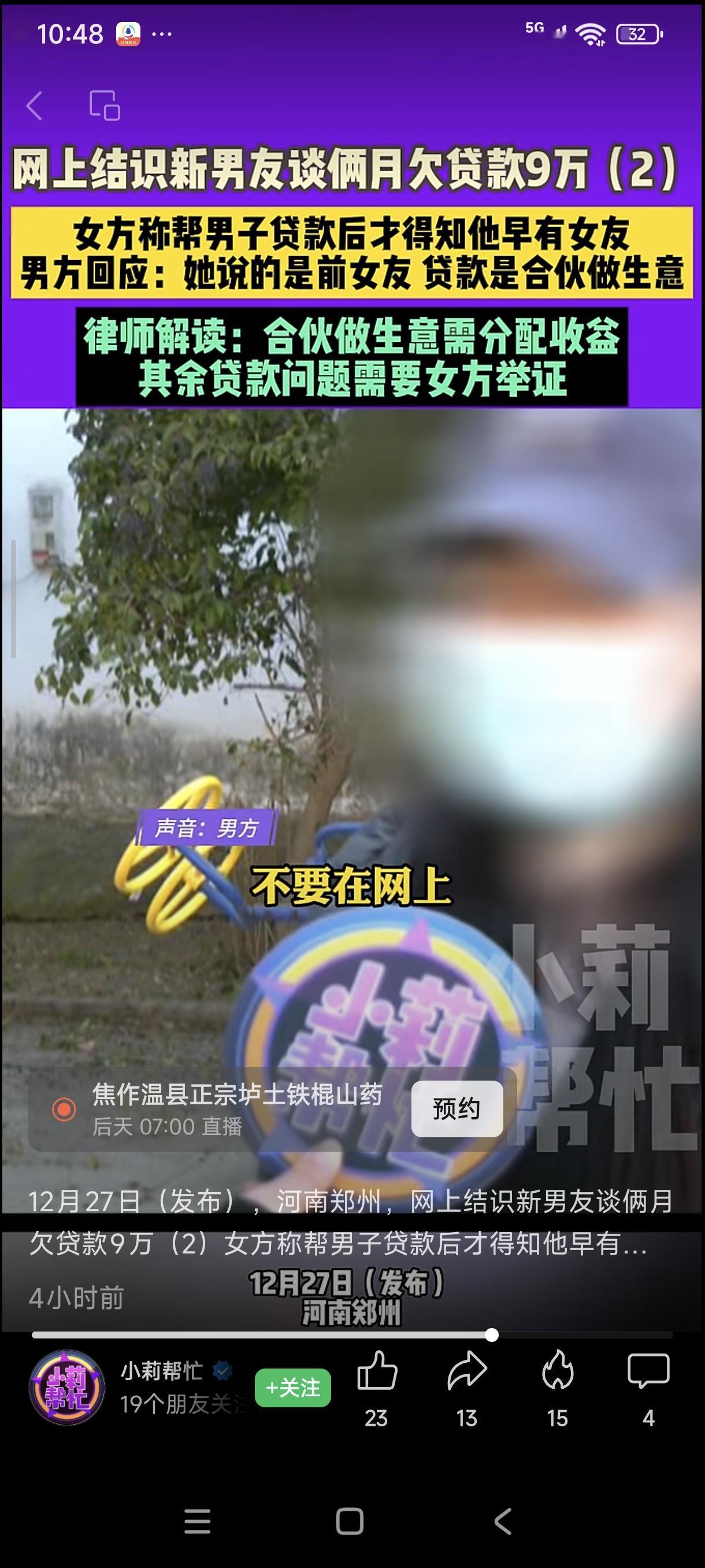 河南郑州,女子在网上认识了个男的,开的奔驰e300,承诺会给女子买奢侈品。很快二人发展成了男女朋友关系,在一起两个月,男子向女子借了90000块钱,男子一直不还钱,女子才发现自己被骗了。对媒体表示,女子表示:“自己被恋爱冲昏了头脑,我爱他爱的毫无保留,他把我骗的一无所有。当记者介入后,发现事情没有这么简单。 袁女士在网上认识了一个男,自称很有钱,开的奔驰e300,想与袁女士谈对象,并表示会给袁女士买LV香水、古驰腰带等奢侈品。袁女士以为自己遇到了土豪,并毫无保留的与其交往,很快二人发展成了男女朋友关系。 没想到,在交往的过程中,男子以资金周转为由,向袁女士借钱,并表示很快会还给她,还会得到额外的补偿。袁女士就信以为真了,尽管自己没钱,还是愿意为其贷款,两个月内分三次为男子贷了90000块钱,而且每次都是取成现金给他。在这个过程中, 她丝毫没有怀疑男子会骗她。 万万没想到,袁女士要还款了,崔男子还钱时,男子表示自己没有钱,让袁女士再等一等,可一等再等,男子还是不还钱。这时,袁女士才发现自己被骗了,自己实在要不来钱了,没办法了,就找小丽帮忙来要钱。 面对媒体的采访,袁女士表示:“自己被爱情冲昏了头脑,以为自己遇到了真爱,我爱他爱的毫无保留,他却把我骗得一无所有。” 记者很疑惑,前两次借完钱,男子都没有还,为什么还要给他借记三次? 袁女士表示,他把自己包装的很好,看起来很有钱,而我坚持相信他很有钱,相信他很快会还给我,没想到自己被骗了。 记者认为,袁女士是被自己的虚荣心蒙蔽了双眼,被别人华丽的外表所骗了。 没想到还有更离谱的,在记者的追问一下,袁女士表示,被男子借走90000块钱之后,他才得知男子有女朋友,从一开始自己就被骗了。 为了帮袁女士要回被骗的钱,记者拨通了男子的电话,在电话里,男子表示,和袁女士谈对象的时候,就已经和前女友分手了。此前和袁女士谈对象是真心的,现在已经分手了,我欠她的钱,他现在是债主。 记者表示:“她都为你贷了款,你现在还不还人家的钱?这是事实吗?” 男子很生气的表示:“我是欠他的钱,但是没有那么多,他自己贷的款自己去租车了,这跟我有什么关系?” 原来,袁女士谈的对象是跑婚庆的,开的奔驰e300也是租的,袁女士看着自己对象跑婚庆很风光我、很赚钱,自己也想租一辆车合伙跑婚庆。 于是,她就贷款租了一辆迈巴赫,时长一个月,租金4万5,押金2万5,合同也是自己签的,钱也是自己交的,这些被租车公司的老板证实了。 原来,袁女士一开始没有把话说全。经过后来的详细了解,袁女士想租车与男子的儿子合伙跑婚庆,只是合伙期间,自己没有拿到分成。 目前,袁女士认为,他们是合伙租车做生意,合伙期间婚庆的收益,也应该有自己的一份。 对此,有律师表示,鉴于袁女士的贷款大部分是用来合伙租车做生意,若能证明二人存在合伙的合意。 那么,男方就需要按照约定,给袁女士分配婚庆的收益,剩余的少部分贷款,袁女士需要提供证据证明自己借给了男子,如果证据属实,男子就有返还的义务。 目前,男子已经返还了部分欠款,剩余的二人还在对账中。 最后,袁女士表示,通过这一次,也算是给自己买了一个教训,还提醒到大家,不要在网上随便结识一些不了解的人。 在大多数人眼中,爱情是非常纯粹的,如果要谈恋爱,双方应该是彼此真心的,在交往过程中真诚相待。如果没有感情基础,一开始对方就要借钱,或者提出投资合伙做生意,这时候就要警惕了,不要被对方华丽的外表和甜言蜜语给骗了。