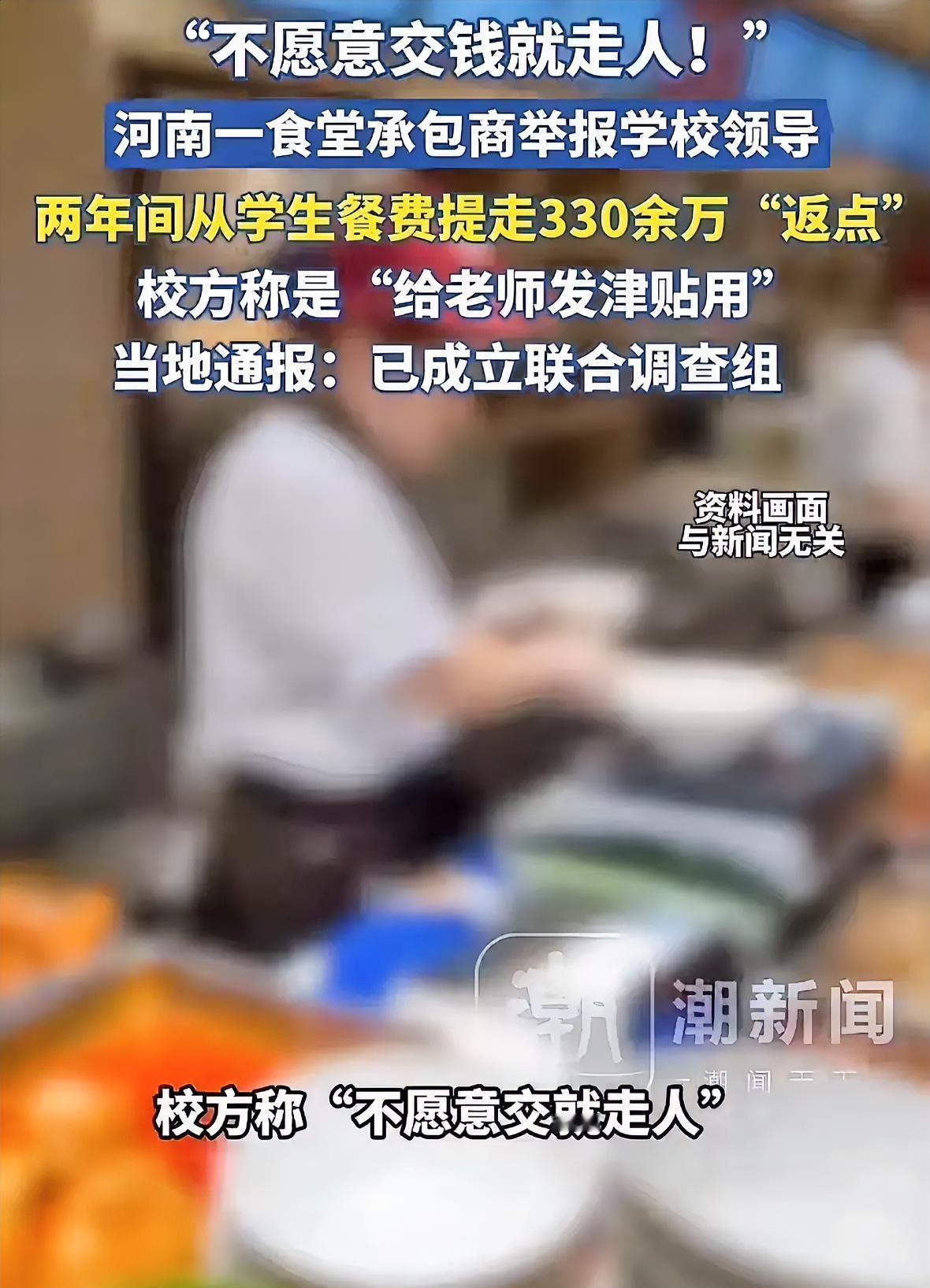不得不说,实名举报淮阳人民中学的马女士这波操作太绝了!简直是“隐忍王者”级别的智慧,换别人早忍不住硬碰硬了。 合同里写好4.5%的管理费,校方突然硬涨到15%,还放话“不交就走人”,马女士没当场翻脸,心里却早有盘算。这两年里,校方让她取现返现,用红笔圈着要拿的钱,以为现金交易就没痕迹,殊不知马女士把聊天记录、银行流水全留了底。 等到合同一到期,她立马实名举报,330多万违规款直接曝光,这时候校方再想反扑都没机会。更关键的是,国家早明确学校食堂要公益非营利,学生20元一天的餐费本该全用在伙食上,他们却拿来当“津贴”,真是打错了算盘。 马女士的聪明,本质是守住了底线——不跟歪风硬碰硬,但也绝不纵容。这种“留痕反击”才是真厉害,既保护了自己,又戳破了潜规则。你们觉得这330多万该怎么处置?违规的人该受啥惩罚才解气?